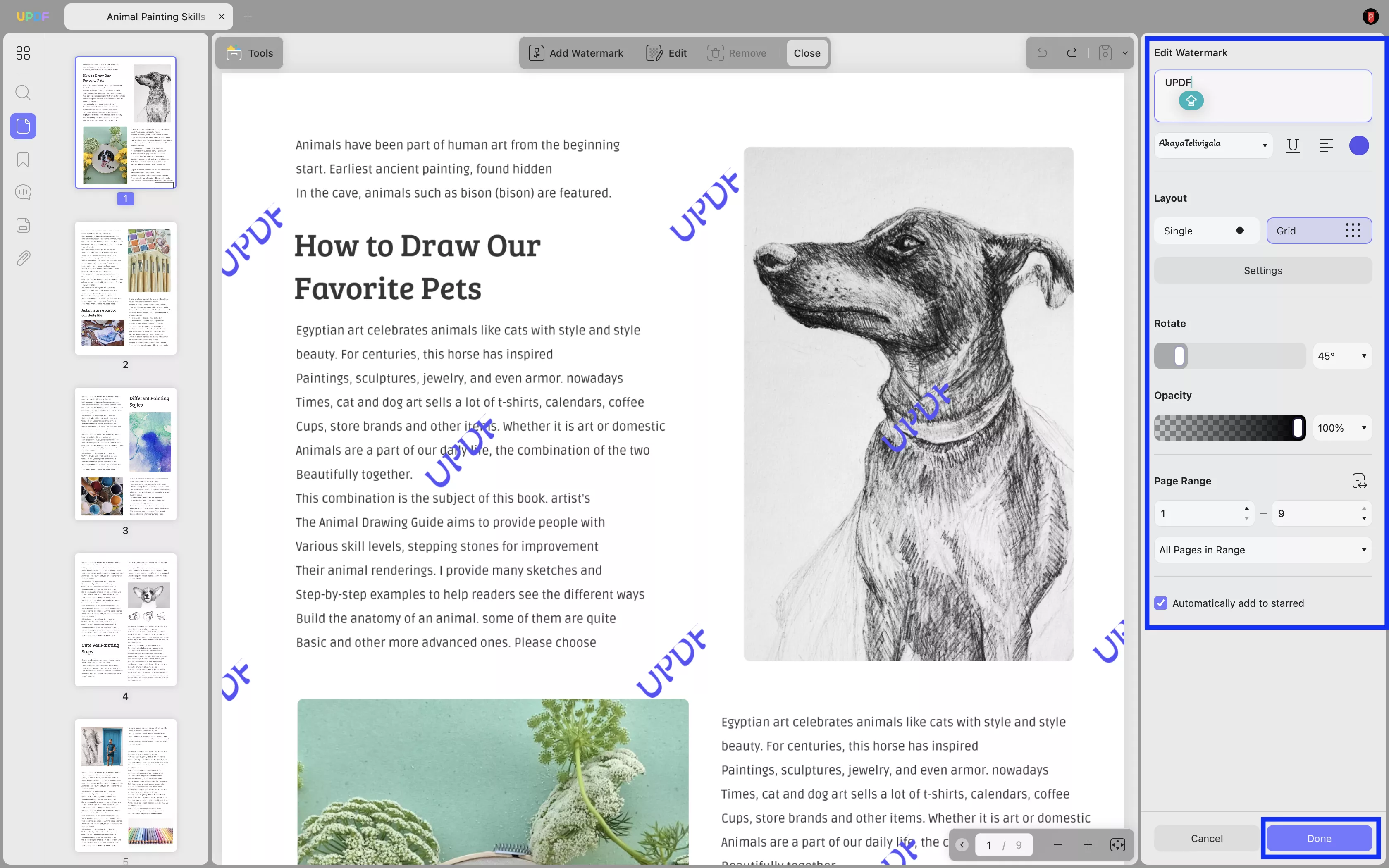 Haga clic en " Listo" para guardar la nueva marca de agua y agregarla al rango de páginas seleccionado.