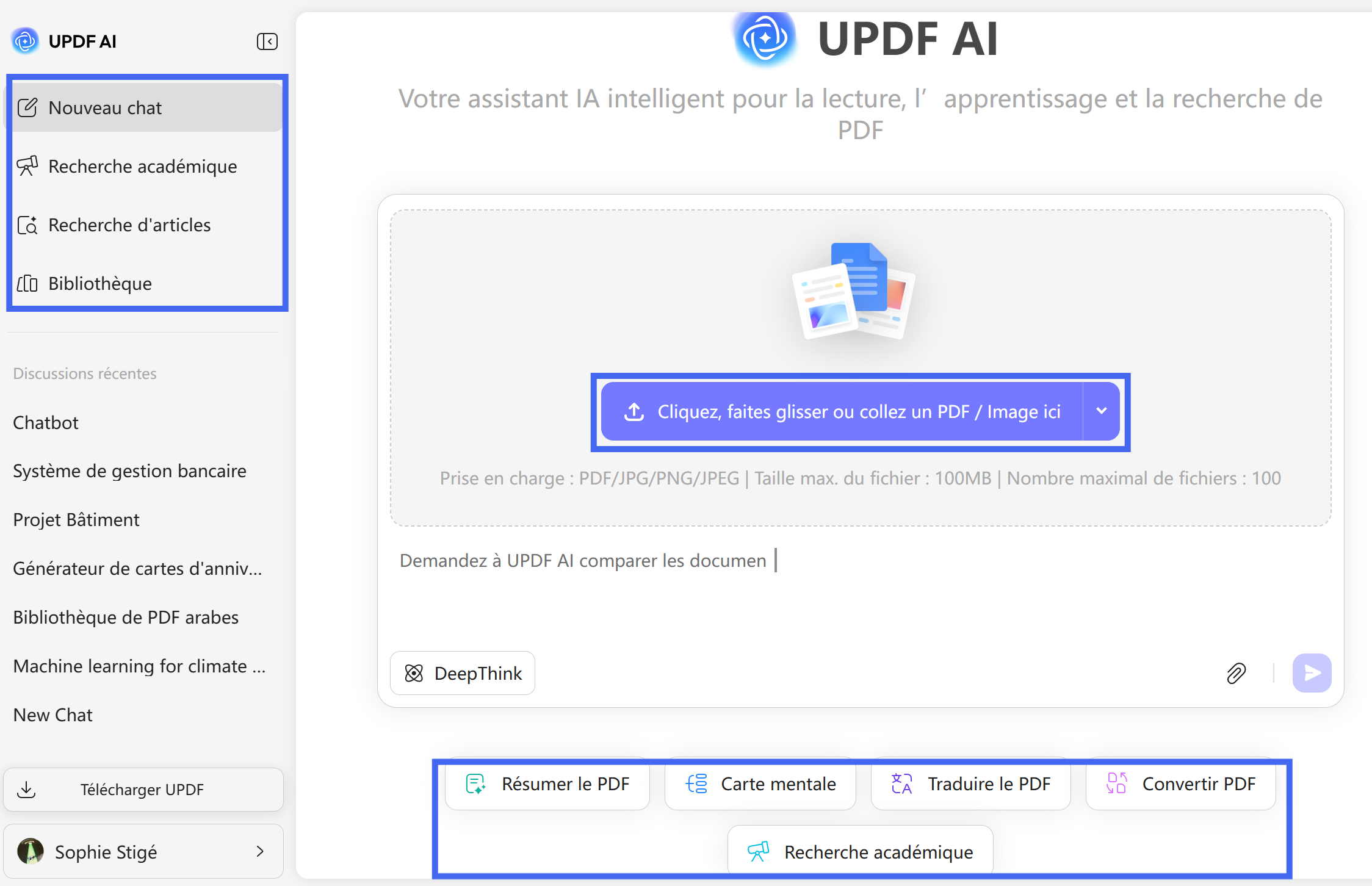UPDF AI est idéal pour ceux qui ont besoin de résumés rapides, d’explications claires et de réponses instantanées à partir de longs PDF académiques — grâce à une recherche intelligente, un support multilingue et une analyse native des PDF.