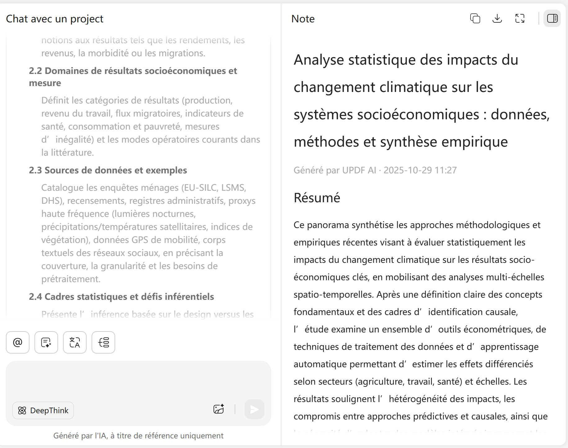 Les chercheurs comptent sur UPDF AI Recherche approfondie pour explorer des sources vastes, synthétiser les résultats entre les études et découvrir des modèles cachés—accélérant les découvertes et transformant les données dispersées en insights cohérents.