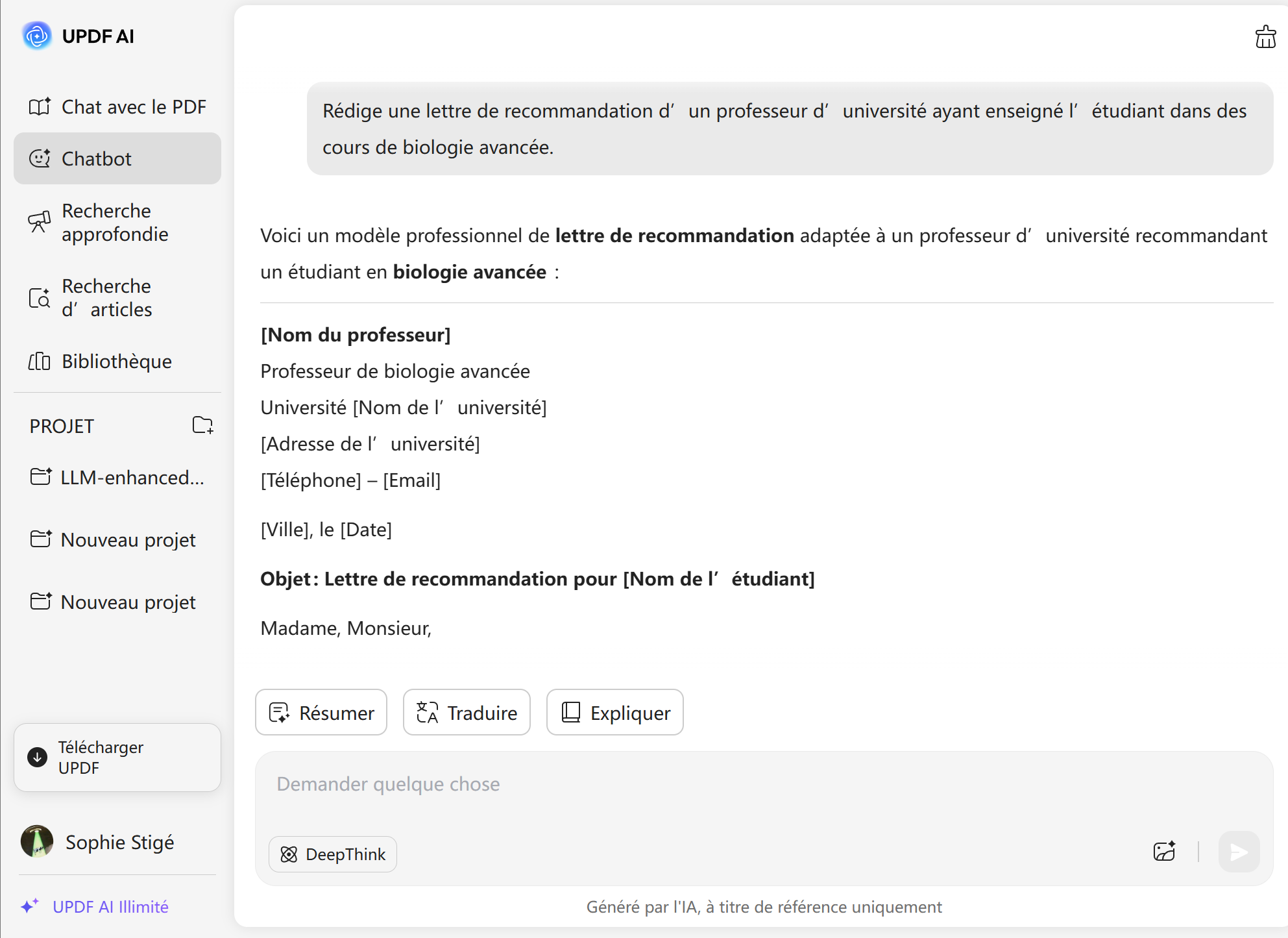 UPDF AI comprend mieux les contextes spécifiques (académique, professionnel, bourse d’études) et adapte le ton ainsi que les exemples en conséquence, contrairement aux IA génériques qui produisent souvent des lettres standardisées.