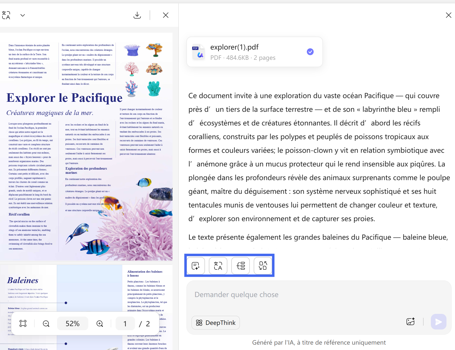 Lire, résumer, traduire, extraire du texte, créer des cartes mentales et convertir des PDF — tout sur une seule plateforme. Pas de changement d’outil, pas de perte de temps.