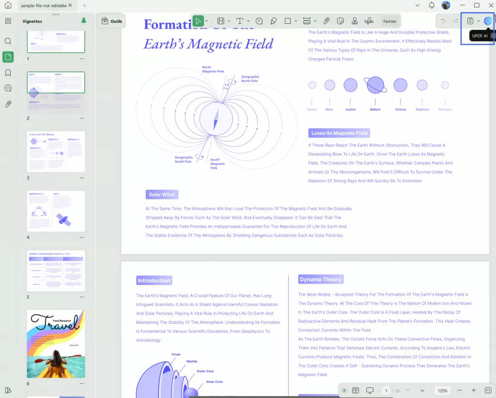 Étape 1 : Ouvrez le PDF dans UPDF et cliquez sur le bouton « UPDF AI » dans le coin supérieur droit.