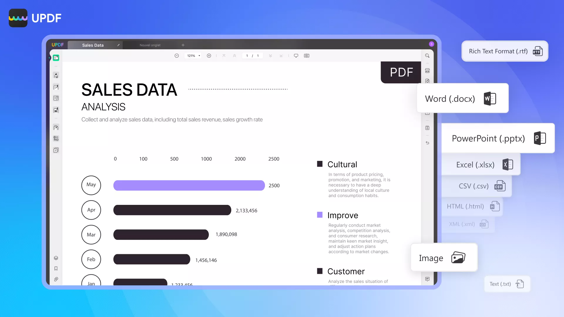 - Utilisez un outil de conversion de PDF, comme UPDF, pour convertir votre PDF exporté en image (ou plusieurs images).