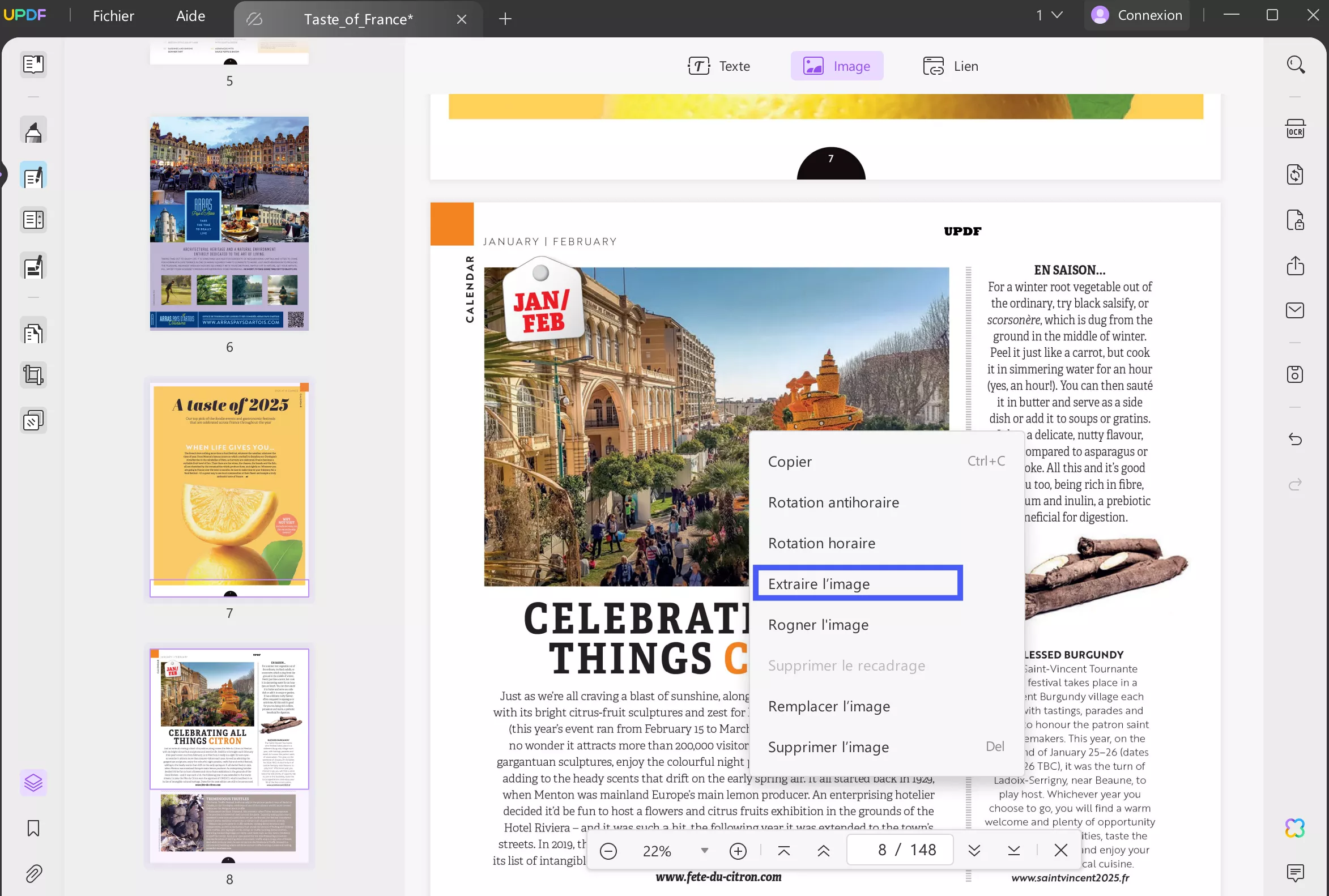 Étape 3 : Cliquez sur l'image que vous souhaitez modifier et choisissez l'outil souhaité dans la barre d'outils qui s'affiche. Vous pouvez recadrer, extraire, faire pivoter des images, etc.