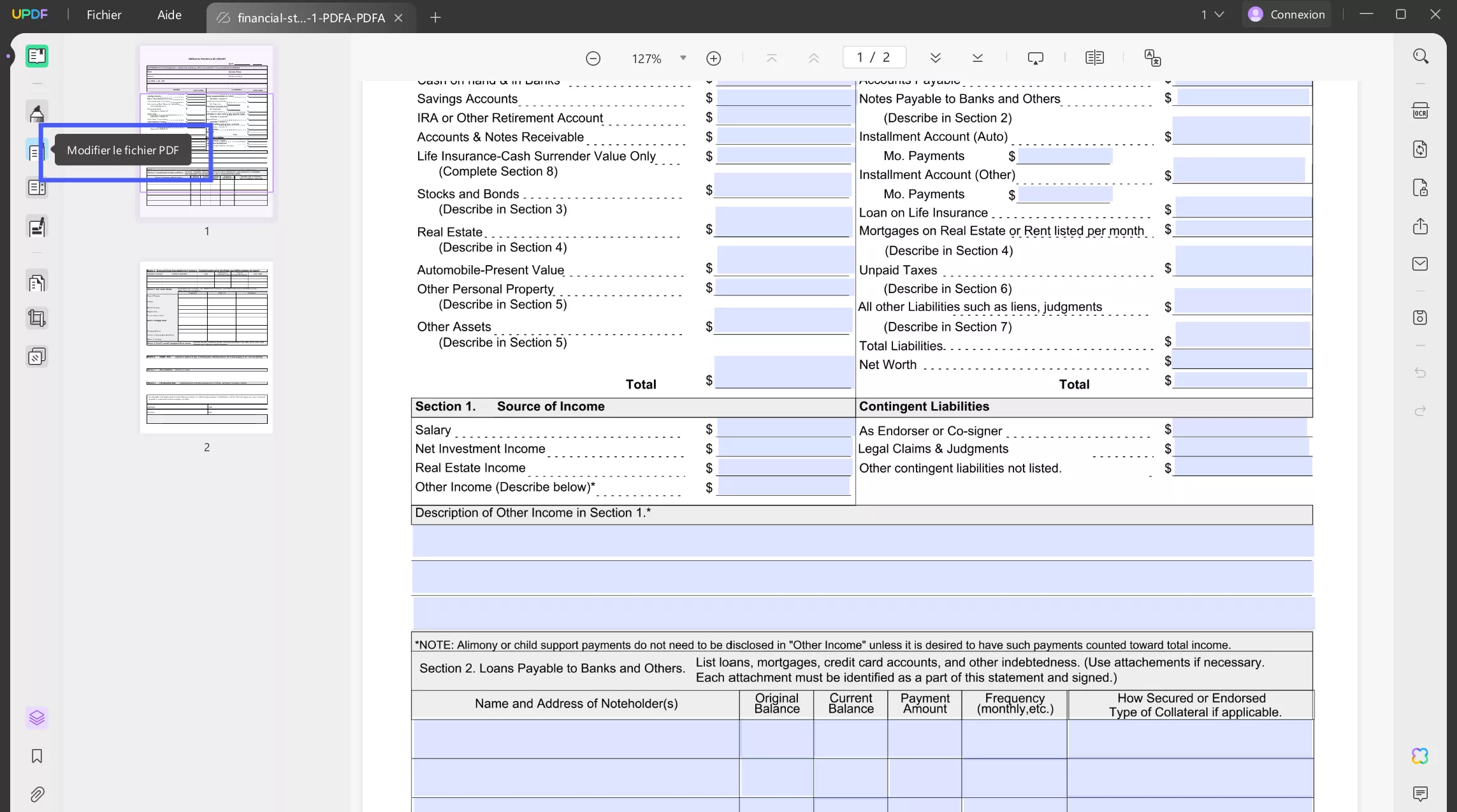 Étape 1 : Lancez UPDF et cliquez sur « Ouvrir un fichier » pour accéder à votre PDF. Modifiez-le via « Éditer le PDF », puis cliquez sur « Enregistrer sous » dans le panneau latéral droit.