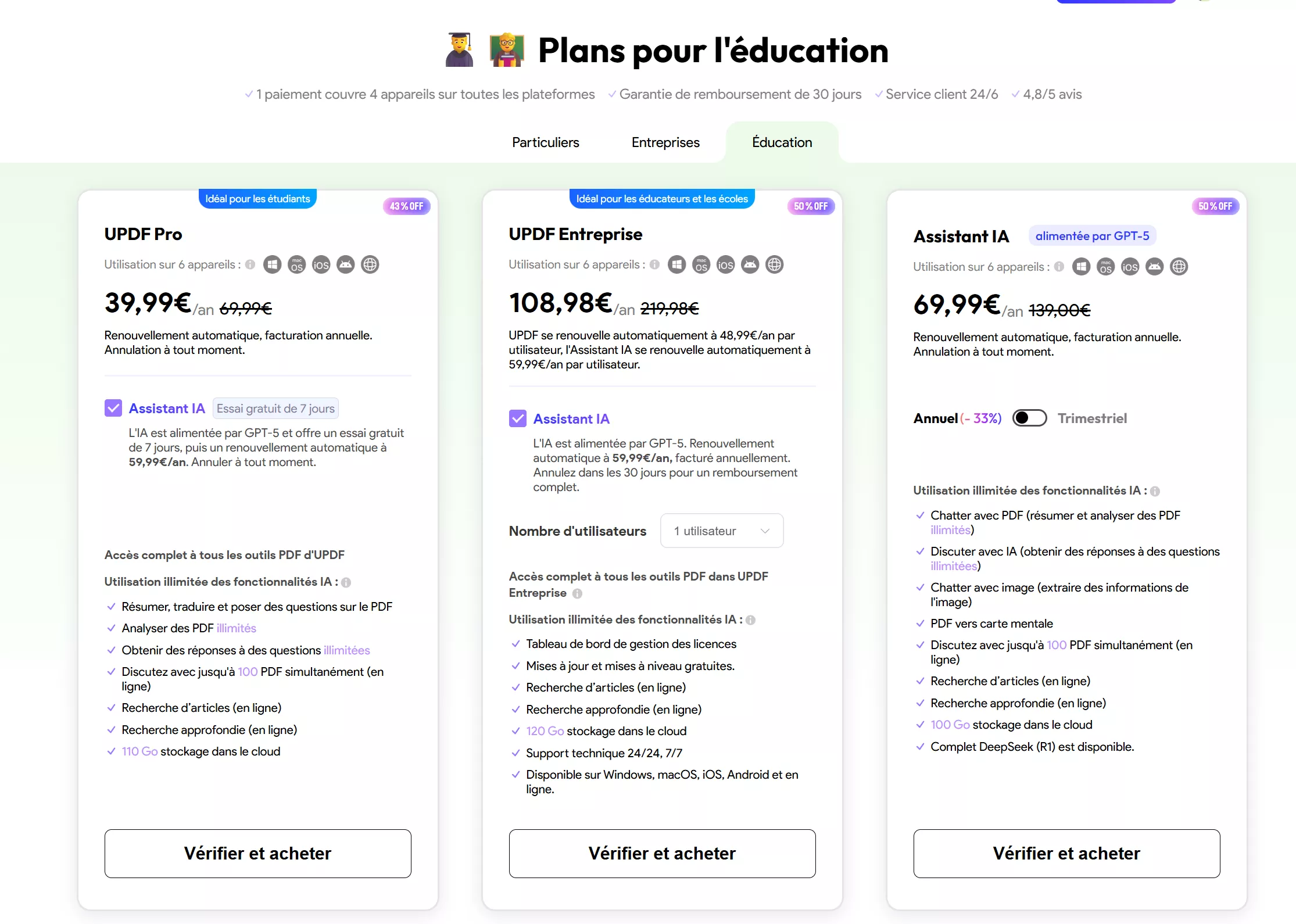 - Visitez la page de tarification « Éducation » sur le site web de UPDF.