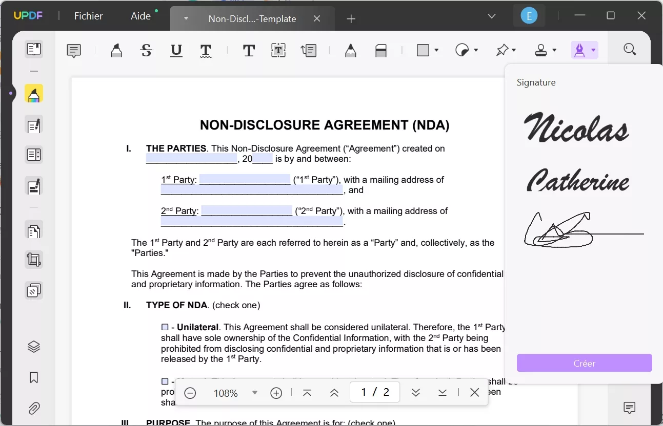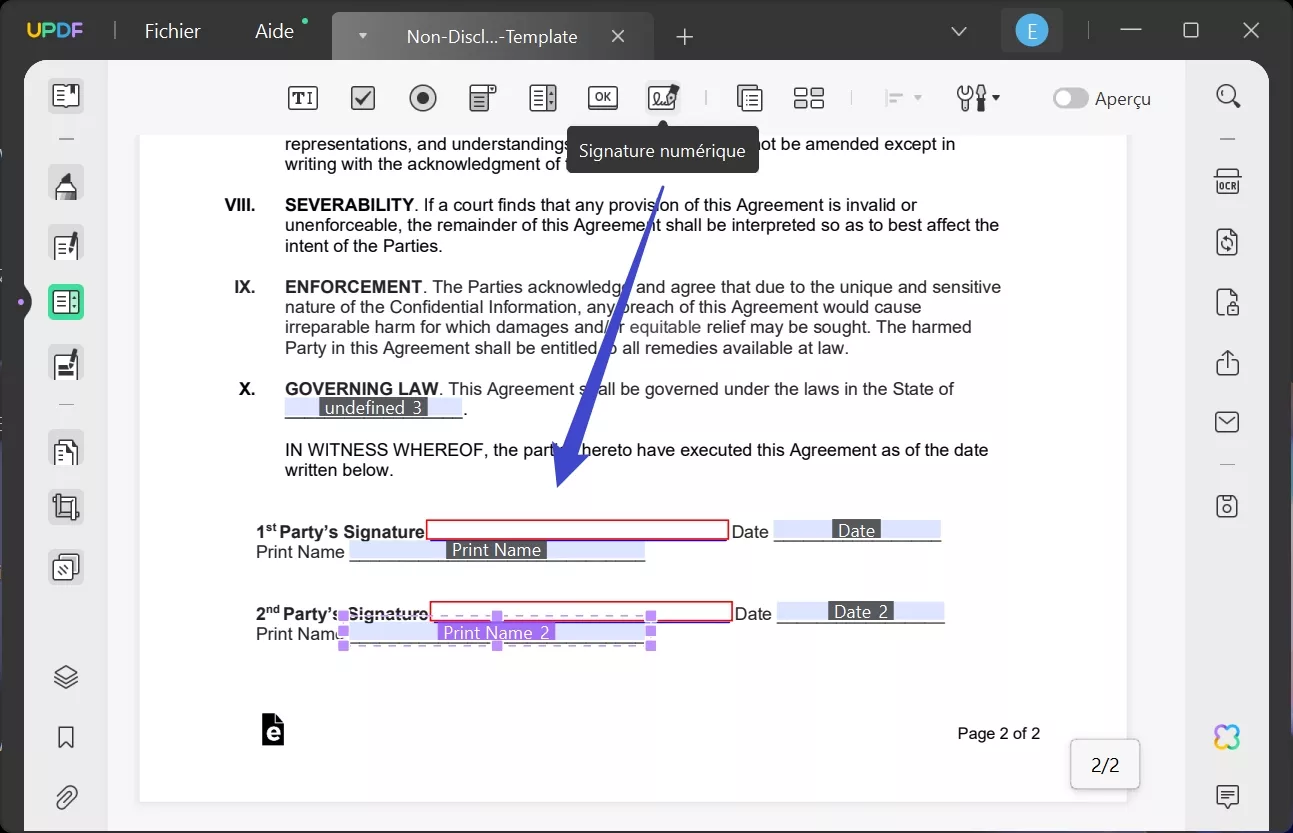 Si vous disposez déjà d'un modèle de l'accord de confidentialité et souhaitez disposer d'un outil complet et rentable pour remplir et signer un accord de confidentialité, vous pouvez utiliser UPDF pour authentifier vos contrats. Il rationalise le processus de remplissage des formulaires grâce à son interface conviviale. Les utilisateurs peuvent facilement remplir les formulaires PDF, personnaliser les signatures électroniques et bénéficier d'une expérience fluide. En outre, cet outil de gestion de PDF adaptable garantit la commodité et l'efficacité dans la manipulation des documents numériques.