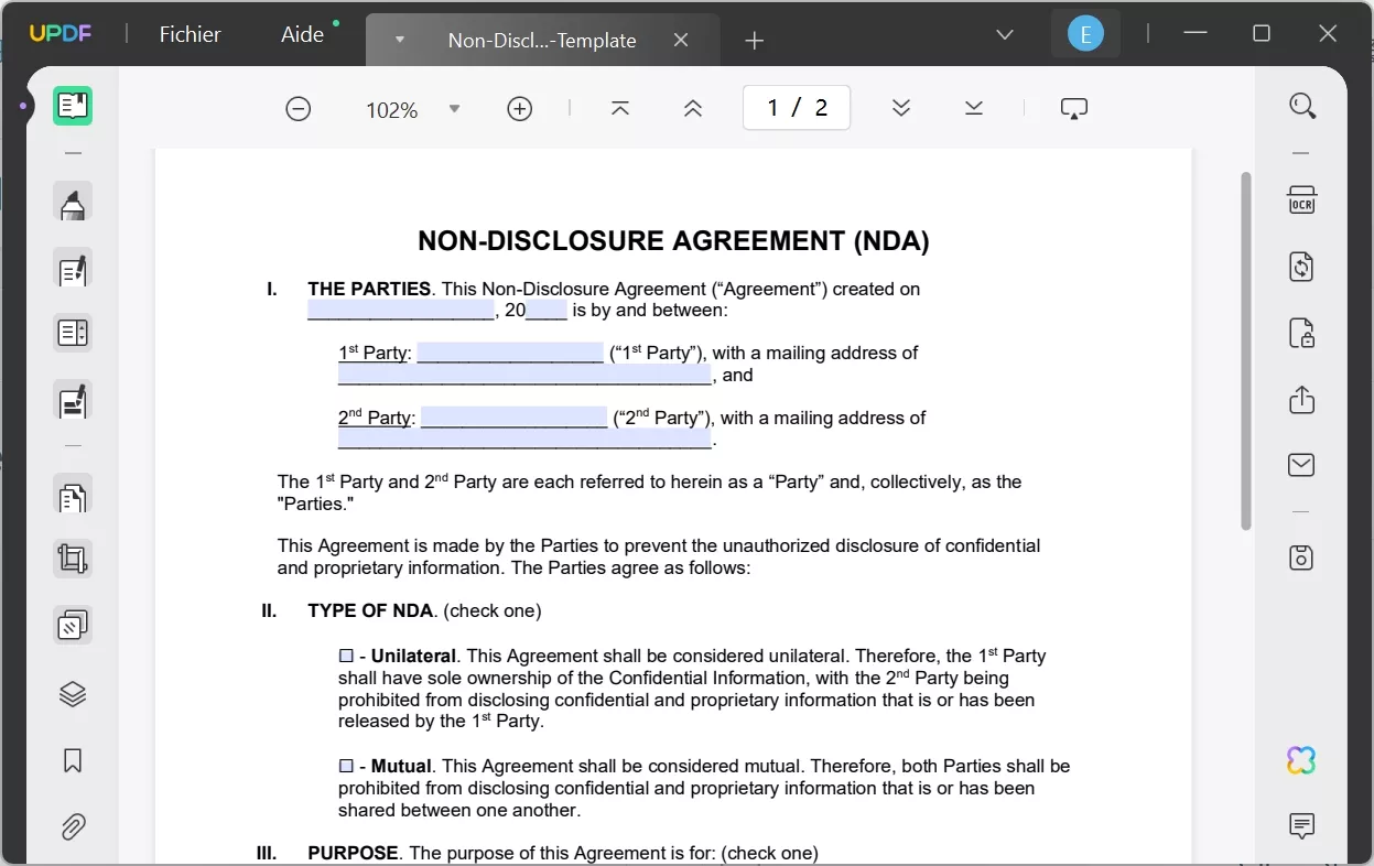 Étape 1 : Remplissez l'accord de non-divulgation après l'avoir importé dans UPDF