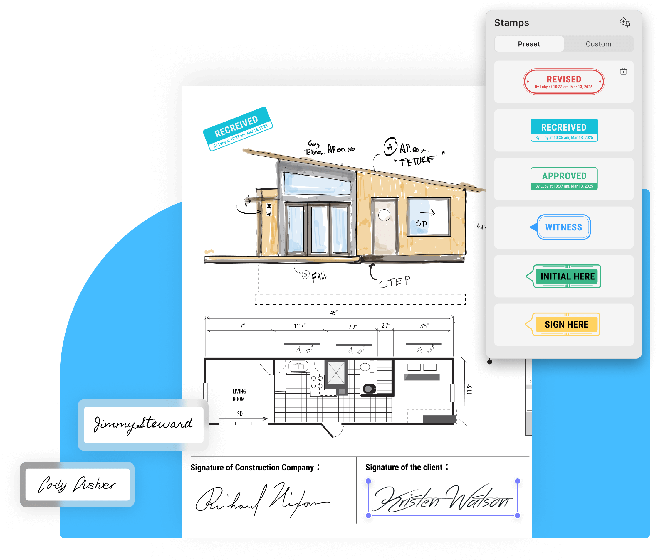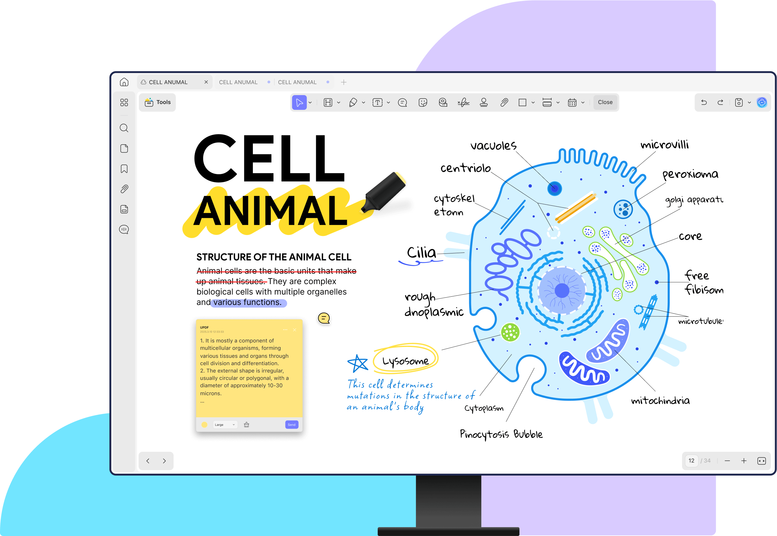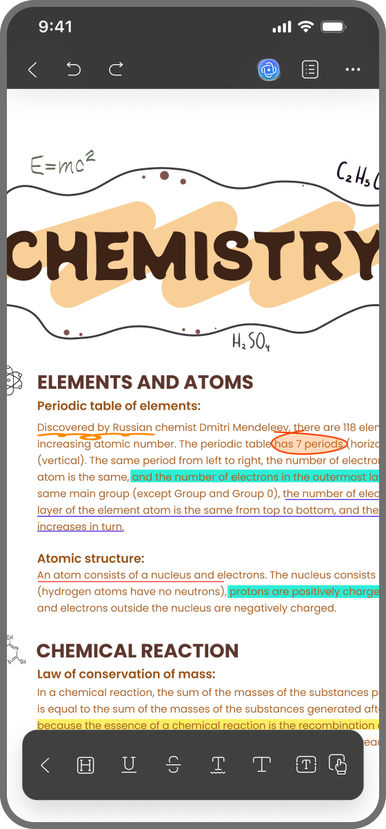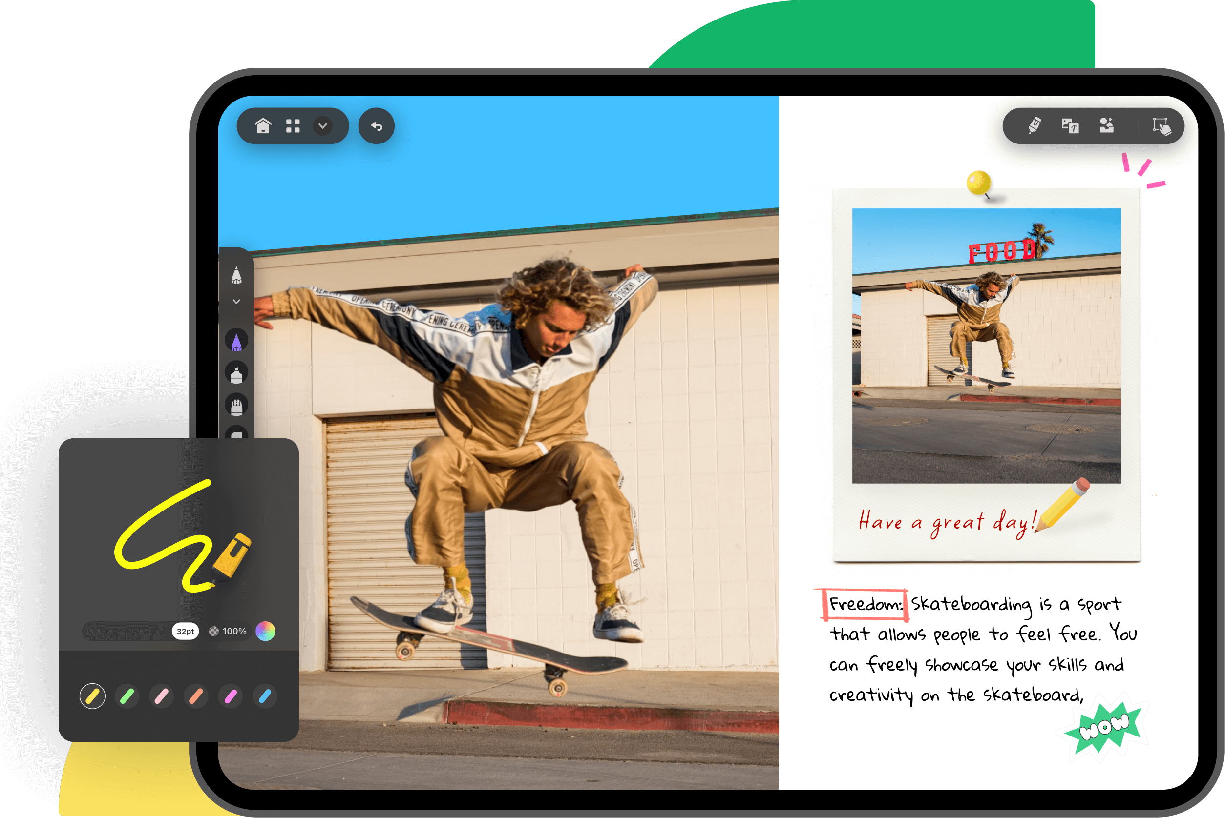 可在 PDF 中加入圖形、AI 生成貼圖與自訂註解,輕鬆表達想法, 支援快速標記與重點標示,並透過直覺式橡皮擦工具細緻調整,讓畫面更整潔美觀。