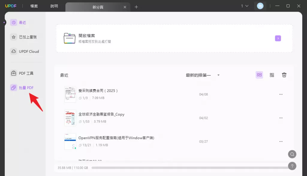 步驟1. 打開UPDF,然後在主界面上點擊 “批量PDF” 圖示。