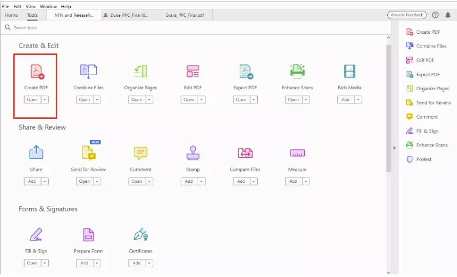 步驟1. 選擇工具 ,然後選擇建立PDF 。
