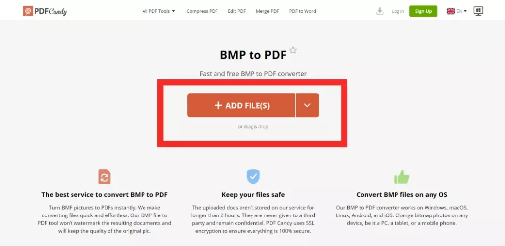 PDFCandy是一款快速免費的BMP轉PDF轉換器,它可以在線和離線使用,按照以下步驟使用PDFCandy網站轉換BMP文件: