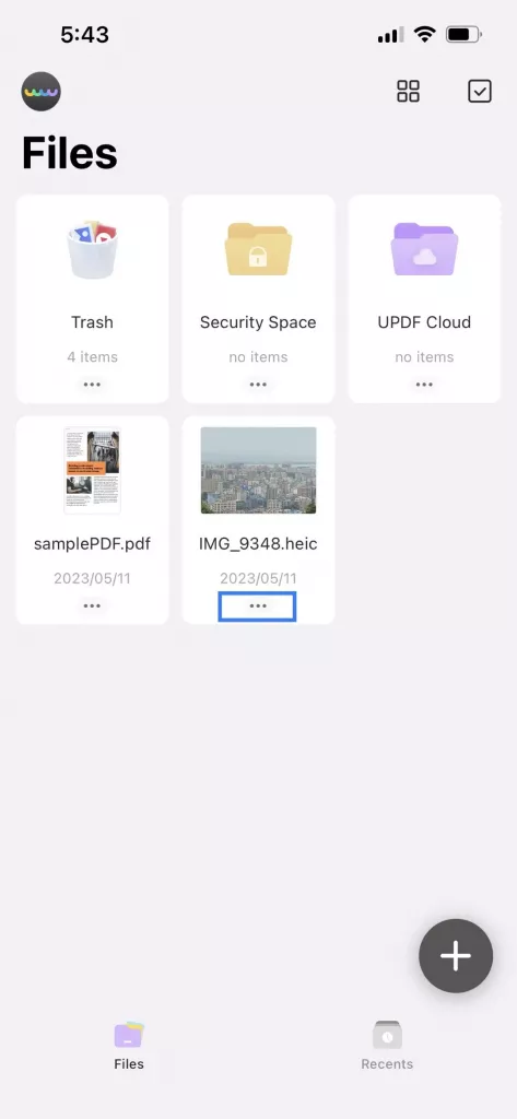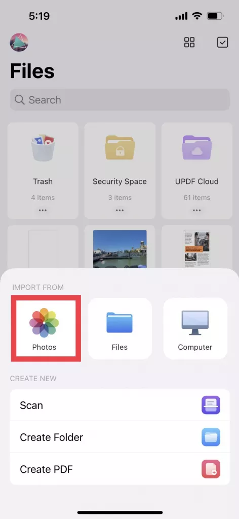 把 JPEG/JPG 檔案轉成 PDF,這對 UPDF 來說是輕而易舉的事兒。和其他辦法不同,這款應用簡化了轉換的過程。這樣,你幾秒鐘就能將 iPhone/iPad 上的照片轉換為 PDF 檔案。具體轉換步驟如下: