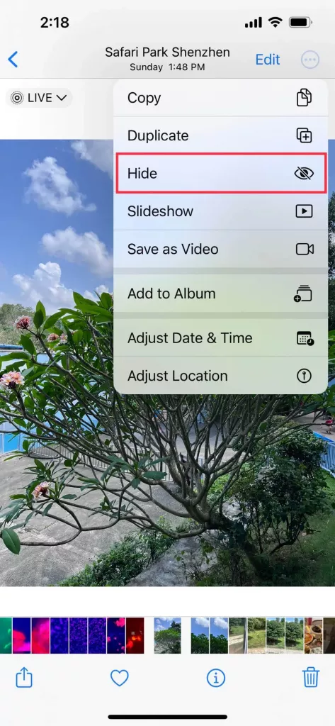 - 步驟 3:點擊「隱藏」,然後確認要隱藏這張照片。