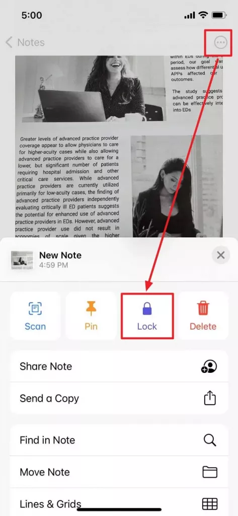 - 步驟 5:點擊備忘錄右上角三個點,選擇「鎖定」。
