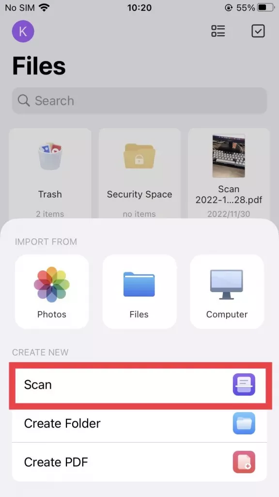 UPDF 還能用 iPhone 相機掃描東西,並把掃描結果轉成 PDF。有兩種方法: