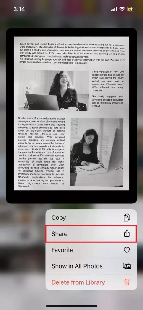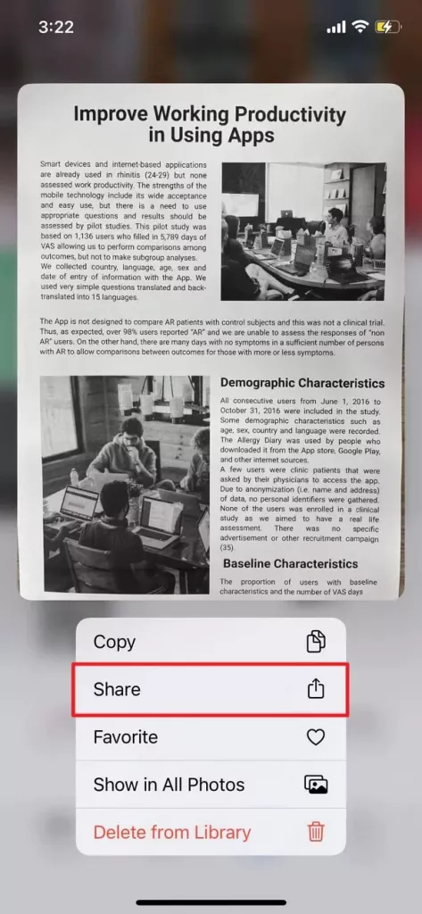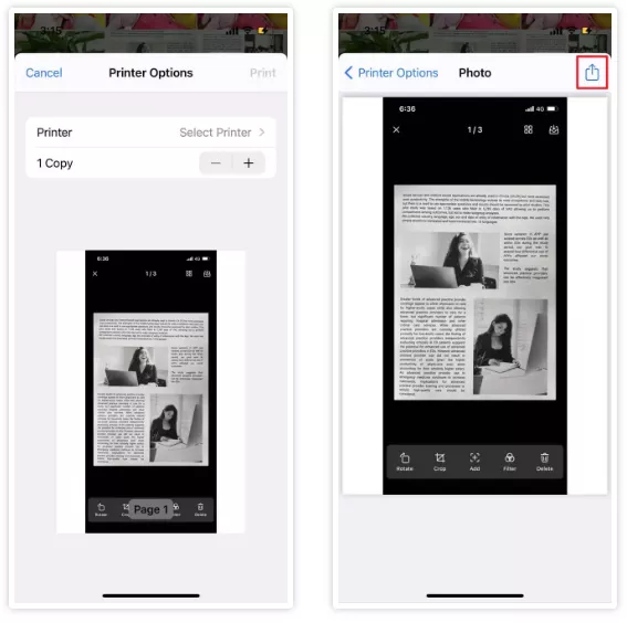 - 選擇 “分享”,然後選中圖書應用程式,圖片就會自動轉換成 PDF。