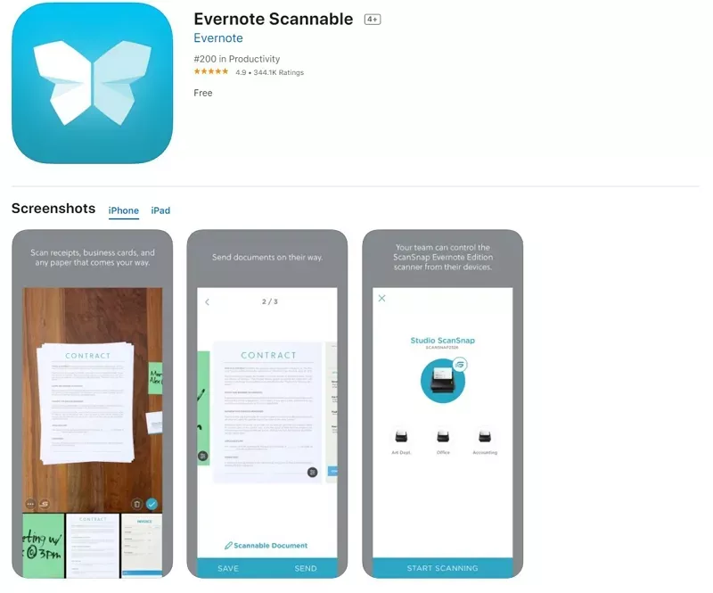 Evernote Scannable是另一款您可以使用的頂尖應用程式,可輕易地將影像/照片轉換為PDF。由Evernote開發,該應用程式功能豐富,可幫助您快速完成轉換。該應用程式可以自動將合同、名片、收據和其他紙質文件捕捉為PDF格式,您可以根據自己的需求使用它。