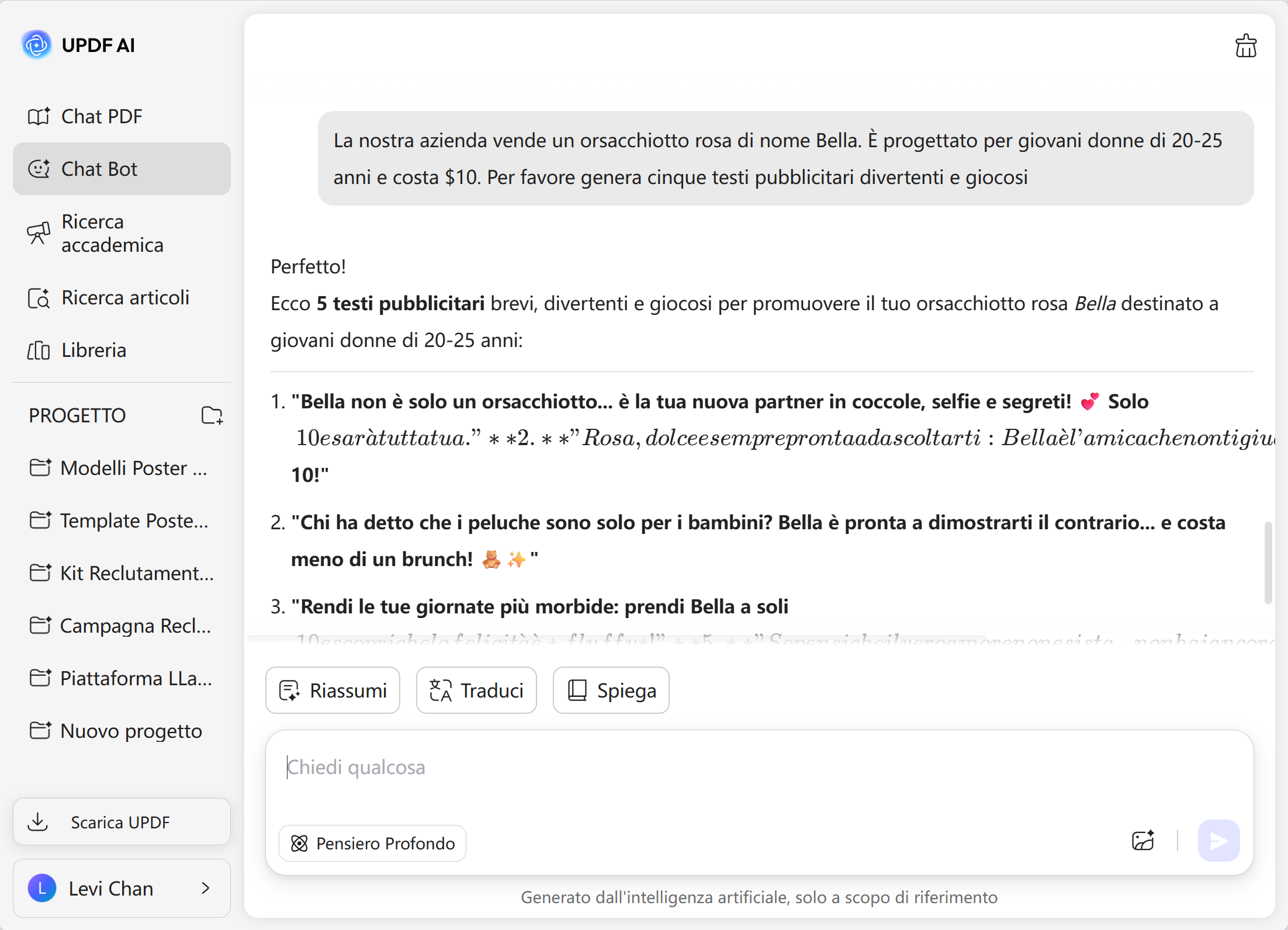 Questi utenti devono scrivere pubblicità per diversi clienti ogni giorno. UPDF AI offre molteplici stili di testo pubblicitario—come persuasivo, umoristico e informativo—permettendo loro di testare facilmente diverse versioni e migliorare i tassi di conversione.