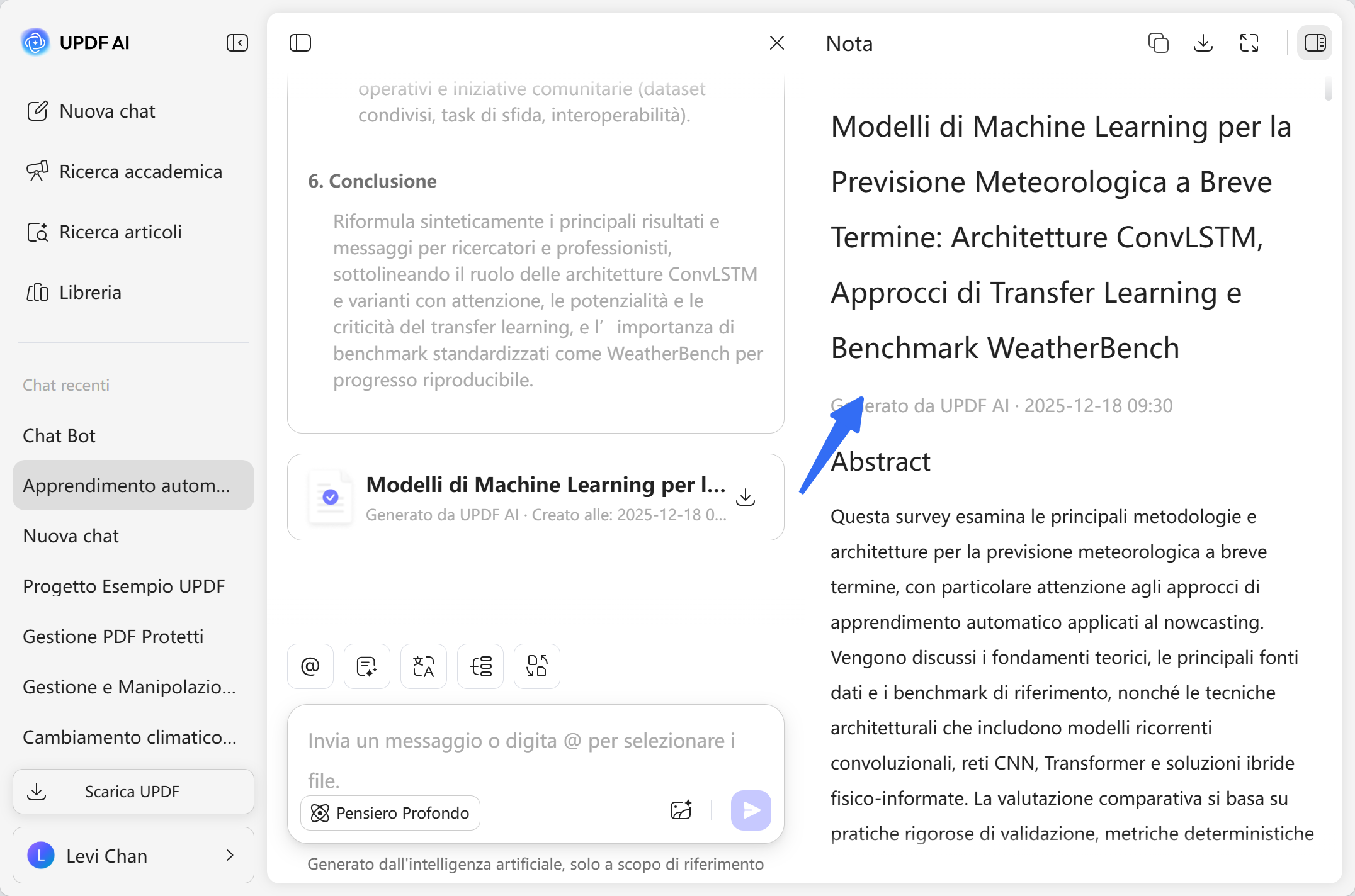 La Revisione della Letteratura UPDF AI può cercare articoli, scaricare riferimenti, conversare con gli articoli, esportare approfondimenti, costruire schemi e generare citazioni formattate. Dall'idea → letteratura → narrazione, più veloce che mai.