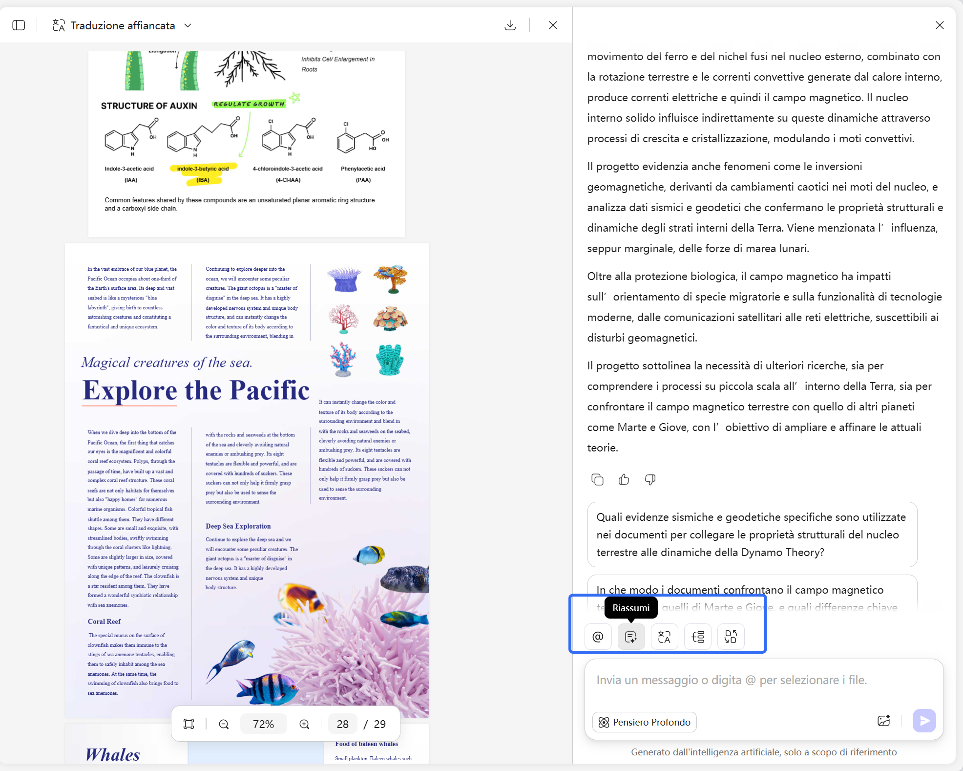 Che si tratti di letteratura accademica o file di lavoro, le funzionalità di traduzione pagina-per-pagina e affiancata di UPDF AI rendono la lettura tra lingue senza sforzo.