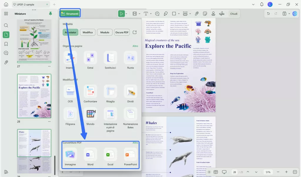 Innanzitutto, sarà possibile creare facilmente un PDF dai diagrammi Visio utilizzando UPDF per Windows. Inoltre, sarà possibile esportare il PDF in vari formati, inclusi Excel, Word e altri, senza alterare il formato originale. Inoltre, UPDF per Windows supporta la conversione batch.