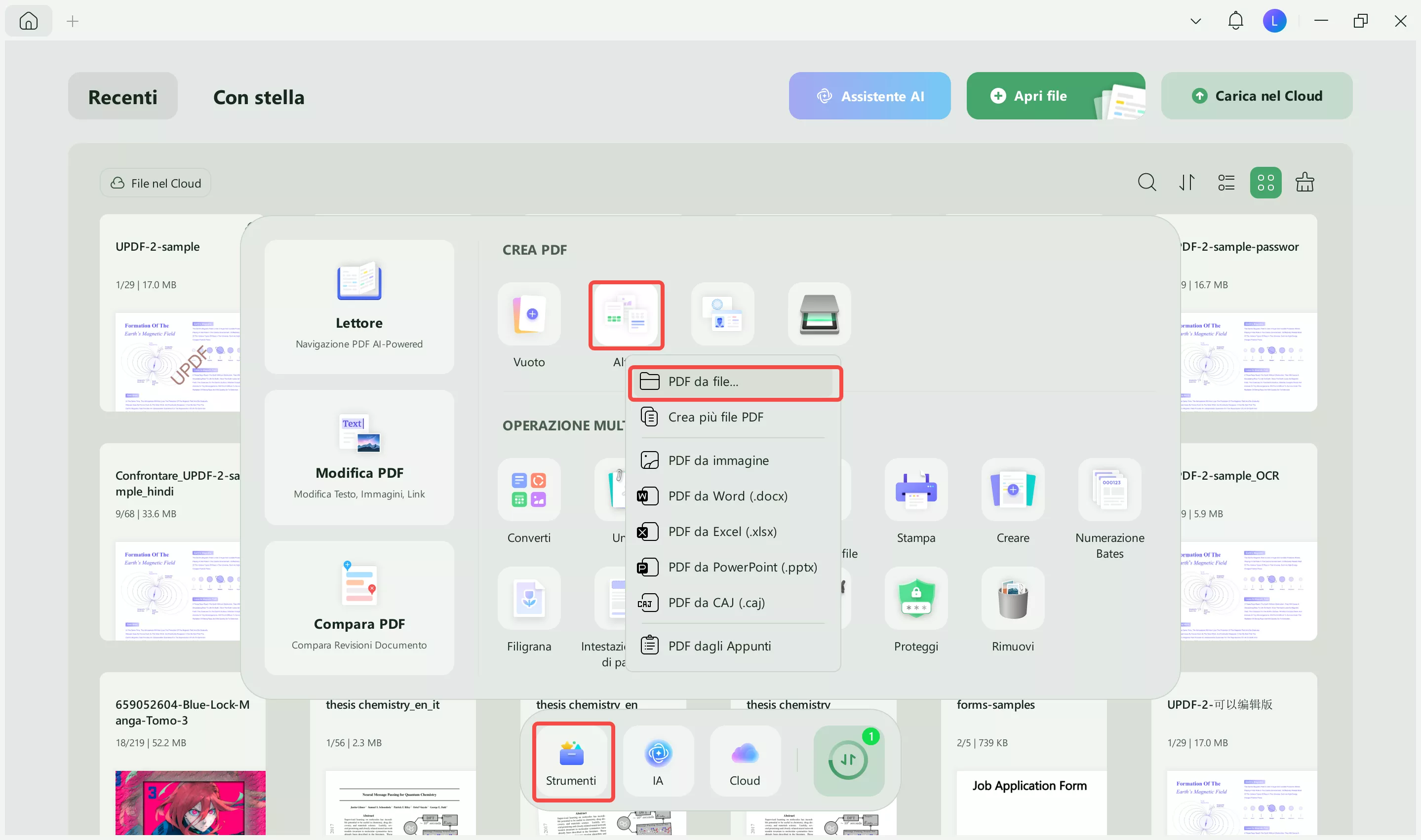 - Dopodiché, utilizza la funzione Batch di UPDF per convertirli simultaneamente in file Excel andando su "Strumenti" > "Converti".