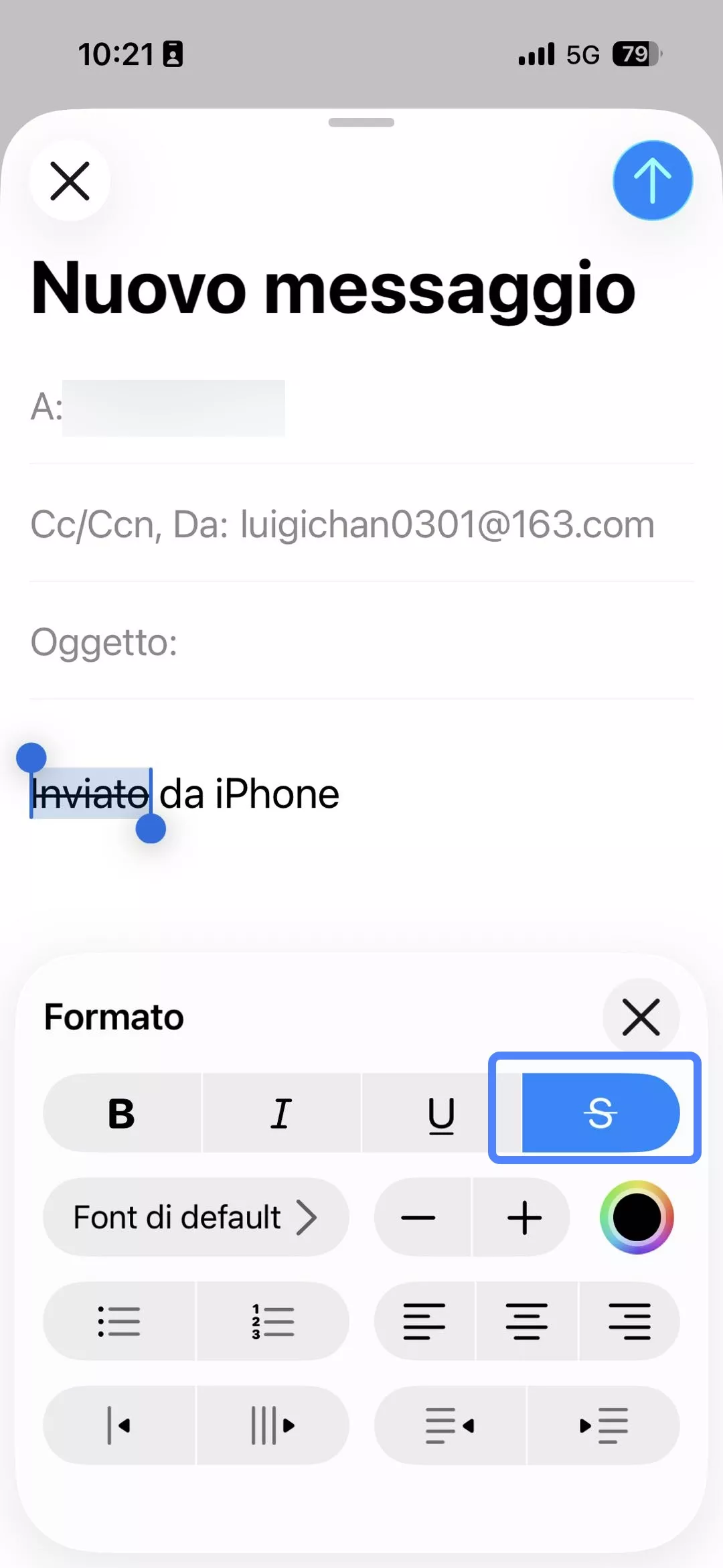 Metodo 5: Come barrare il testo nelle e-mail su iPhone?