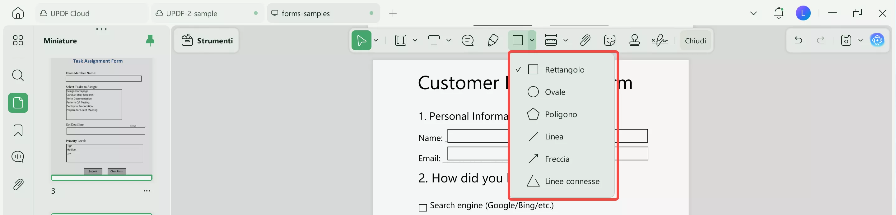 A volte, potresti avere un modulo PDF dove la casella di controllo non funziona normalmente. Questo accade perché il modulo non è compilabile, quindi se hai una casella di controllo selezionata, potrebbe sembrare che non ci sia soluzione per deselezionarla. Questi moduli PDF sono solitamente progettati per la stampa e la compilazione con una penna. Quindi, aggiungere un rettangolo sopra la casella utilizzando la funzione di annotazione sarà la soluzione migliore per deselezionare quella casella. Potrai farlo seguendo questi passaggi con UPDF: