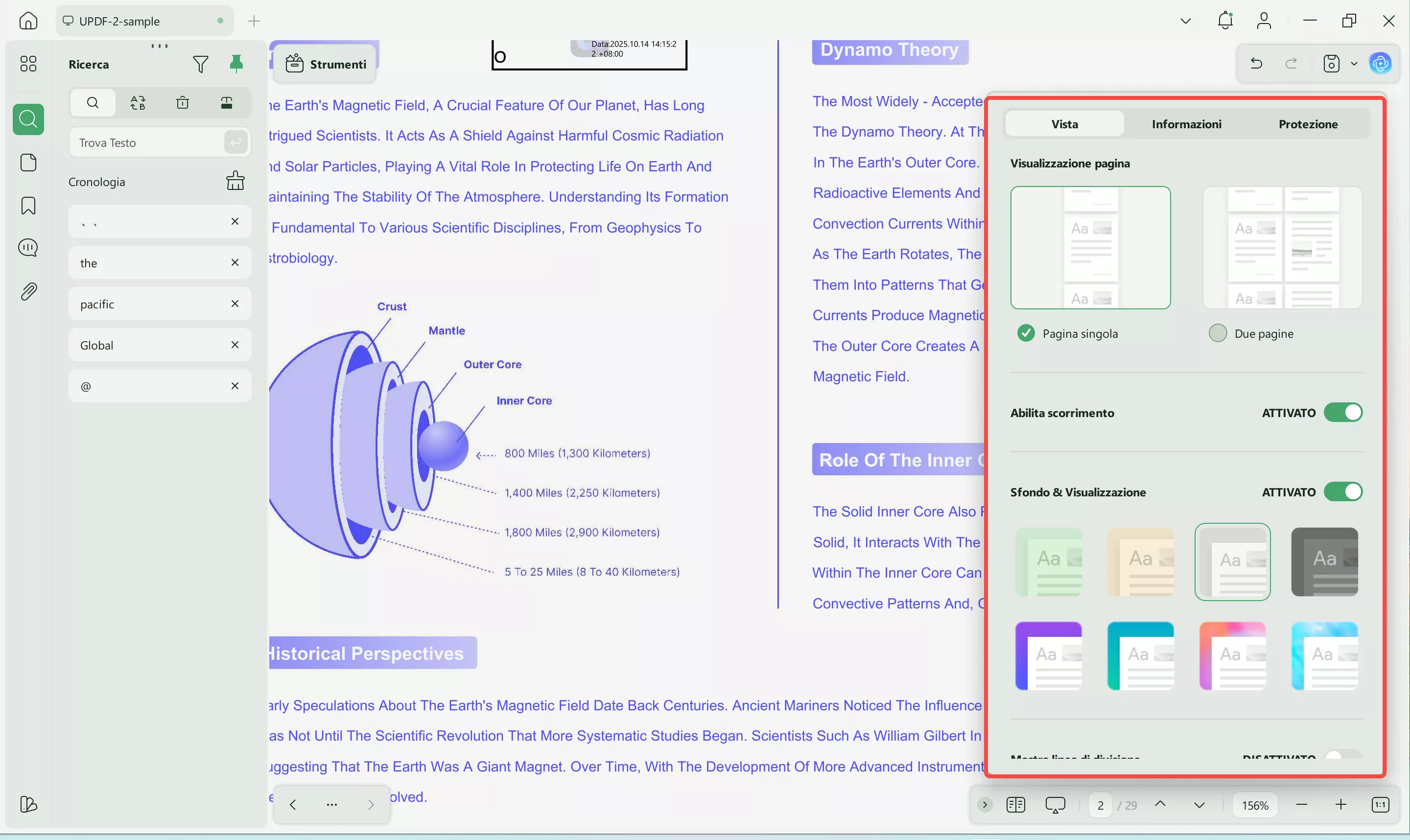 - Sarà possibile leggere i PDF con visualizzazione/scorrimento a pagina singola o doppia.
