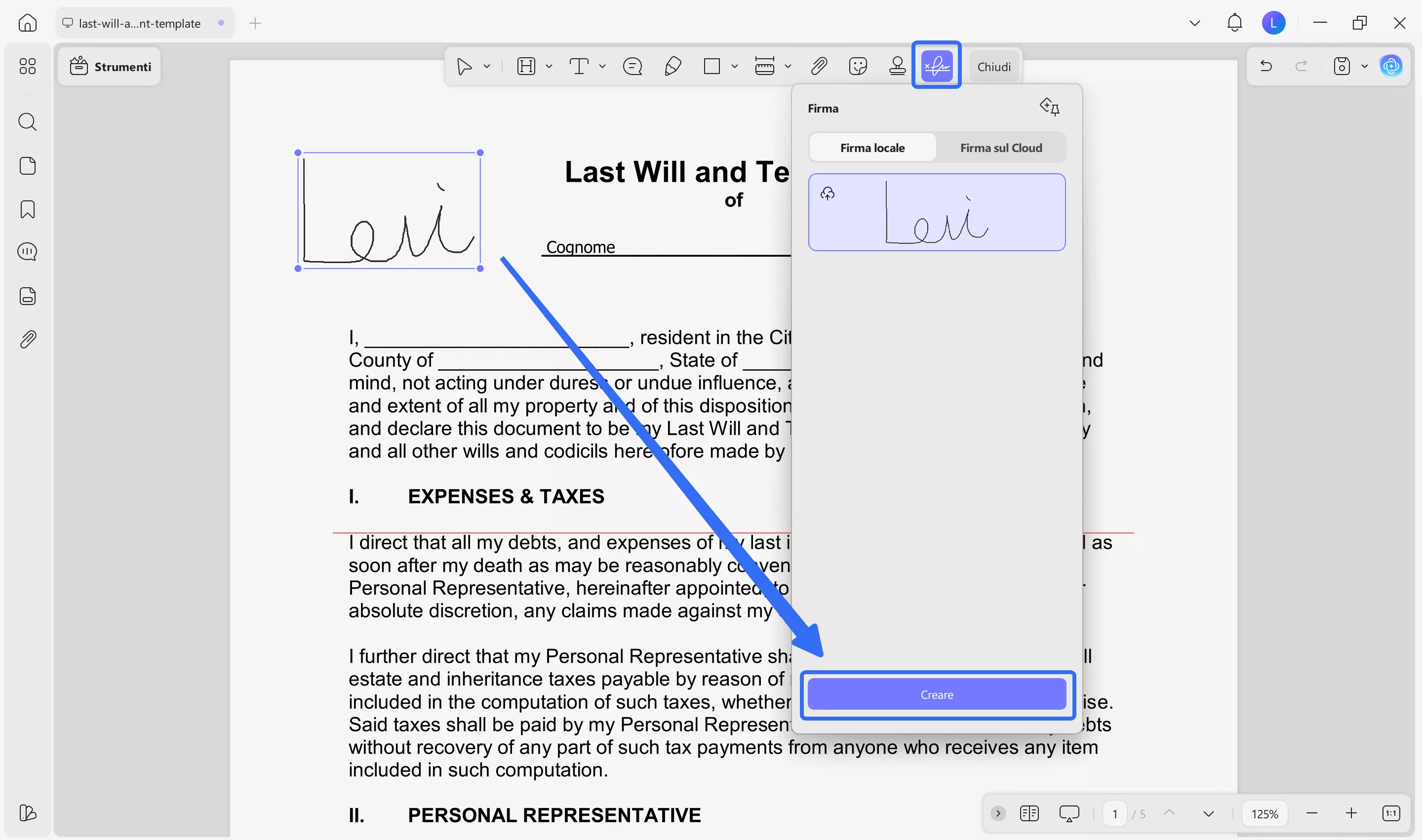 3. Come firmare il modello PDF del testamento
