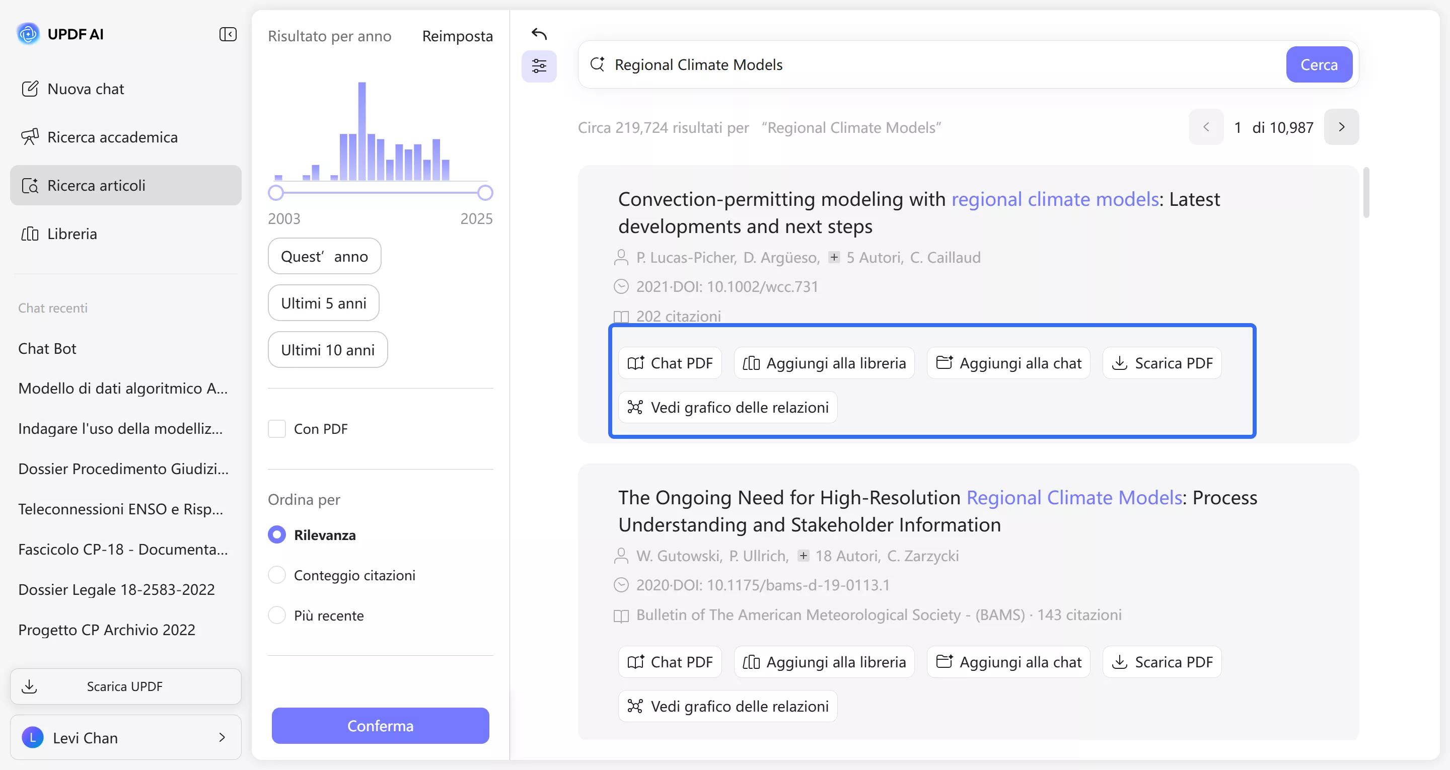 Trovare il documento giusto è più facile con i filtri integrati di UPDF AI Paper Search. Puoi filtrare i risultati della ricerca per trovare i documenti che corrispondono alle tue esigenze. Una volta caricati i risultati, puoi interagire con ciascun documento direttamente dall'elenco. Ecco come: