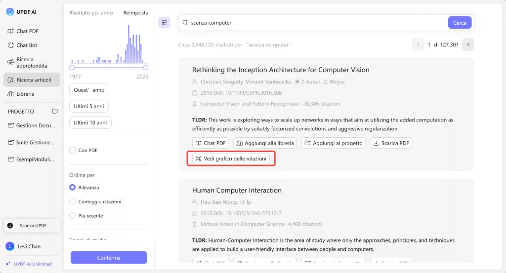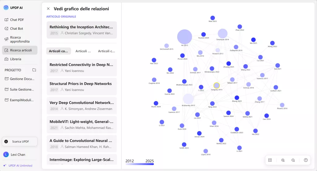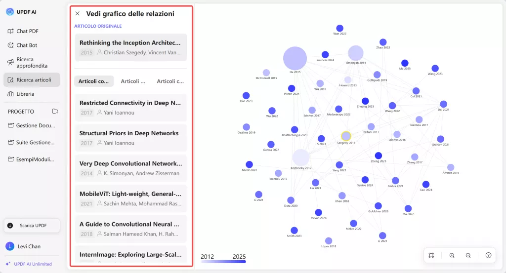 - Visualizza il grafico delle relazioni: scopri come il documento si collega ad altri attraverso citazioni e argomenti condivisi.