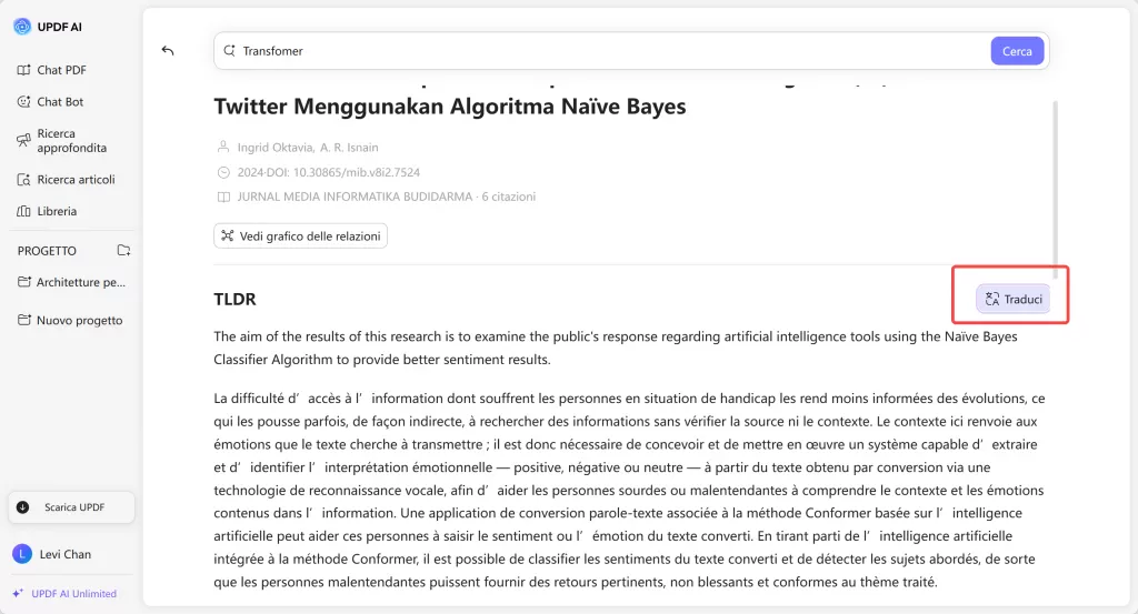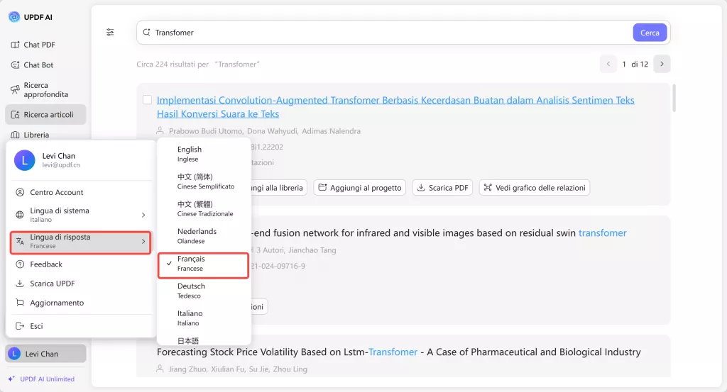 Hai bisogno di leggere una ricerca nella tua lingua preferita? UPDF AI Paper Search semplifica la ricerca. Puoi tradurre rapidamente i riassunti dei documenti in qualsiasi lingua tu voglia. Basta un clic e il riassunto appare nella lingua selezionata, senza bisogno di cambiare strumento.