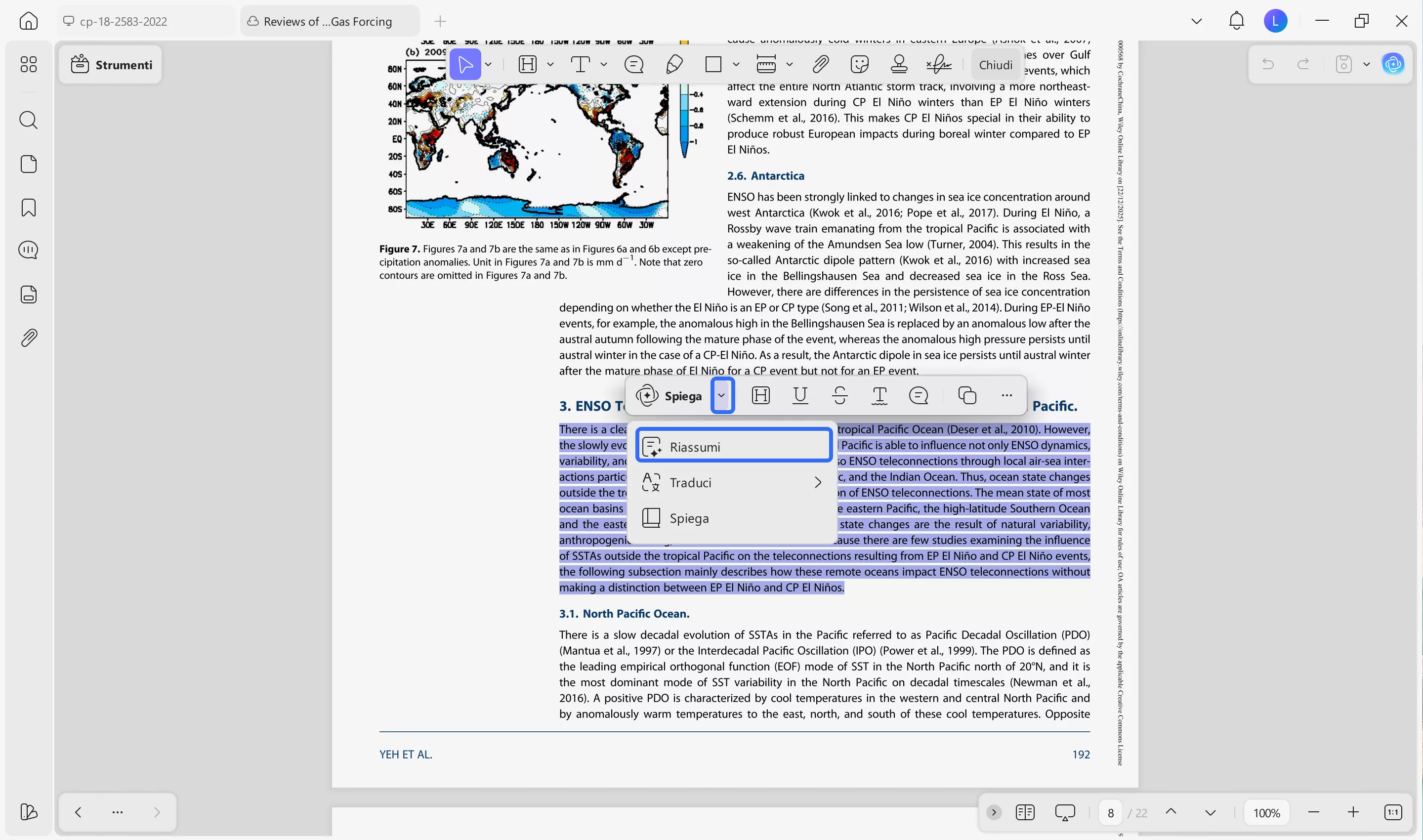Istruzioni: apri il PDF su questa app e seleziona il paragrafo o la riga desiderati dal file per accedere a un menu a comparsa. Successivamente, premi l'opzione “UPDF AI” dal menu e scegli “Riassumi” nel menu bottom-up che si apre. In questo modo otterrai un riassunto del testo selezionato, che potrai copiare e incollare e consultare rapidamente.