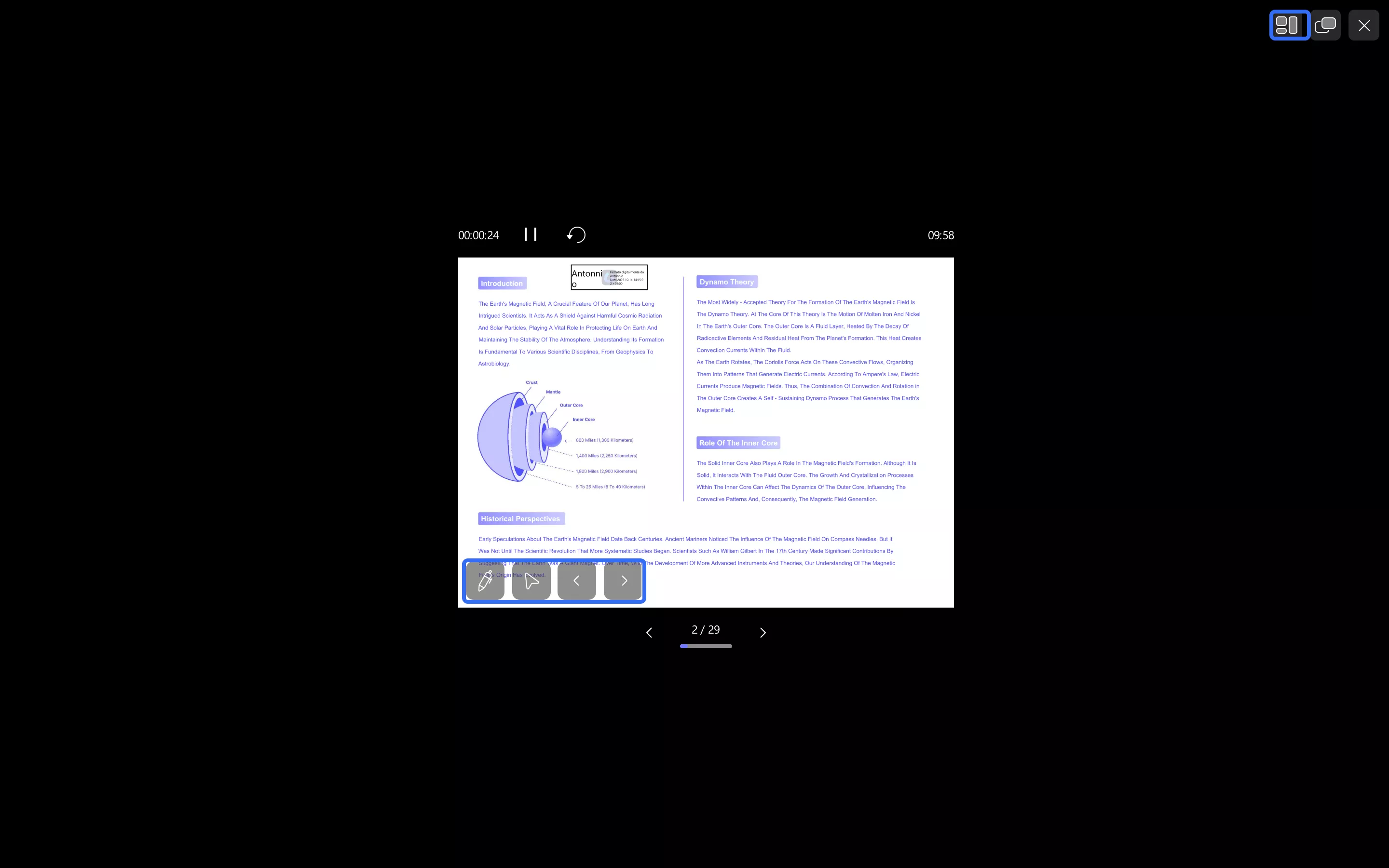 Passaggio 2. UPDF Copilot aprirà il tuo PDF in modalità presentazione. Da qui potrai accedere ai comandi per riprodurre le diapositive, modificarle e persino utilizzare la vista relatore.