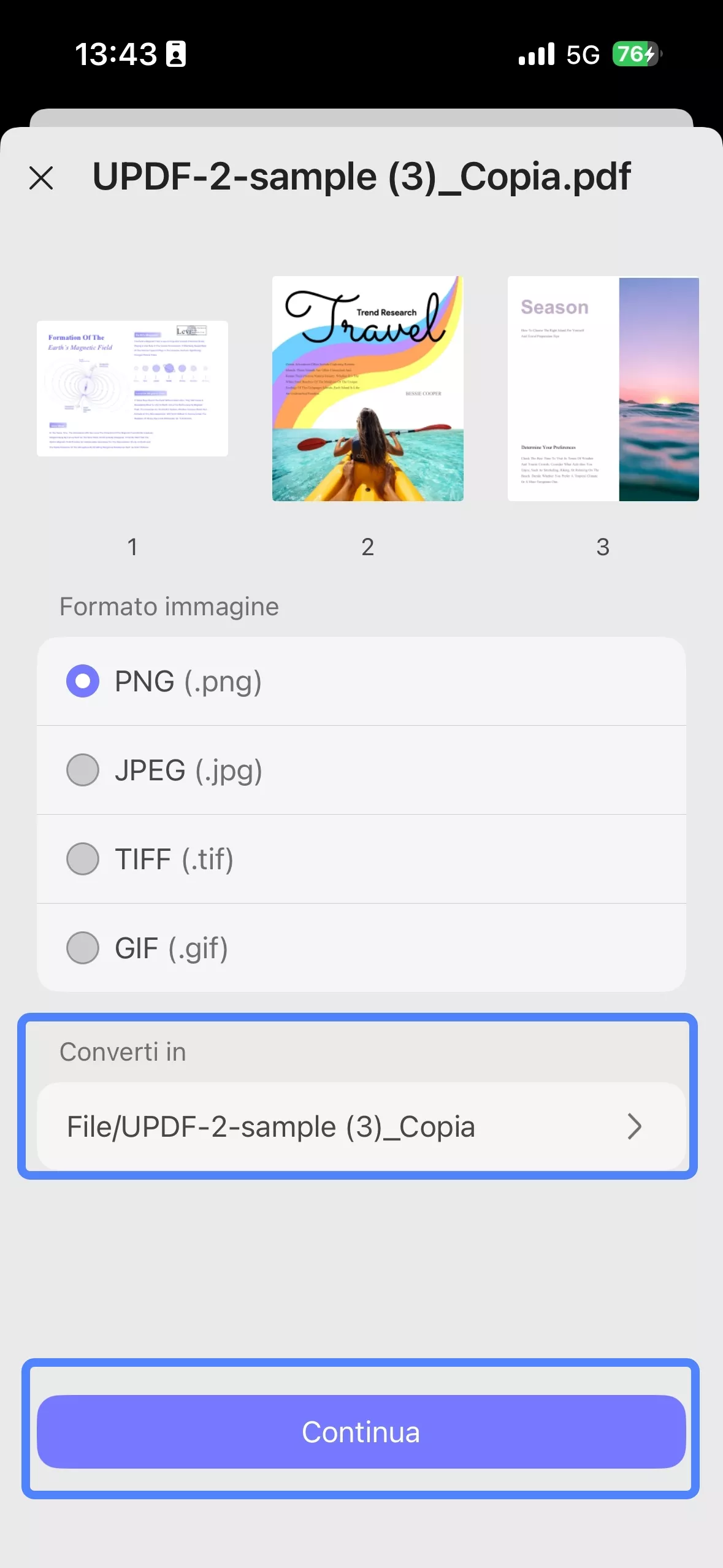 Sebbene il PDF sia un formato universale, convertirlo in immagine rende molto più semplice la condivisione e l'incorporamento dei contenuti. UPDF per iOS fornisce la conversione di PDF in immagini di alta qualità con pochi clic: