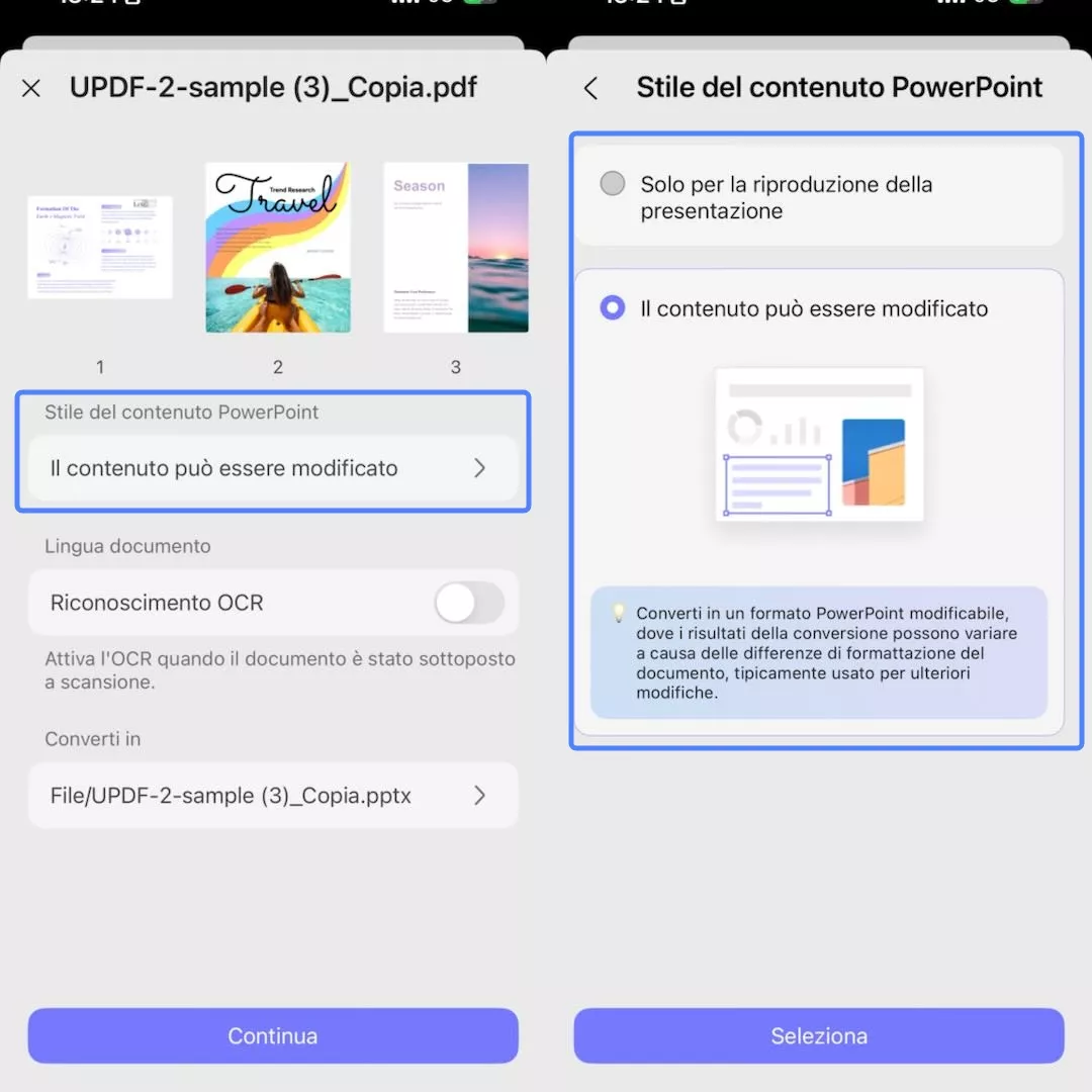 Ci sono occasioni in cui potresti avere la necessità di trasformare un PDF in una presentazione PowerPoint. UPDF per iOS non solo converte rapidamente le tue slide PDF, ma fornisce anche la conservazione del design e della formattazione originali. I passaggi sono i seguenti:
