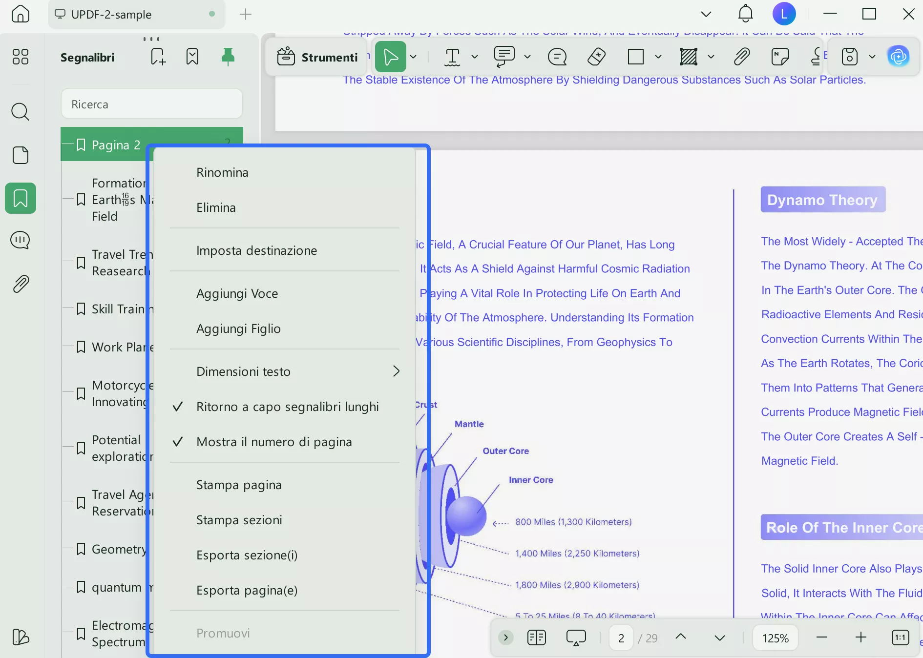 Segui la guida qui sotto per imparare come aggiungere e gestire i segnalibri utilizzando UPDF per Windows.