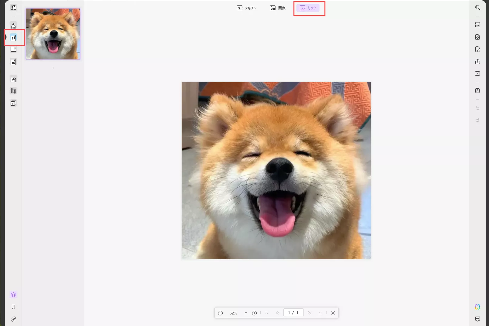 ドキュメントの左側に「PDF 編集」タブがあります。それをクリックすると、上部にオプションのバナーが表示されます。PDF 編集のトップ メニューから、「テキスト」ツールを使用してテキストを挿入できます。「画像」ツールを使用して、画像の向きを変更したり、切り取り、置換などの他の画像編集を行うことができます。また、「リンク」ツールを使用すると、ファイルを Web ページまたは別のページにリンクできます。