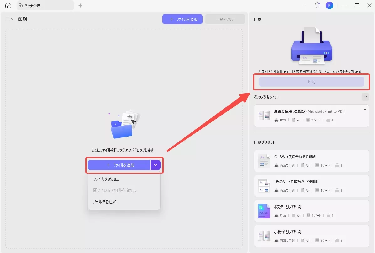 さらに、UPDFの印刷・バッチ変換機能を使えば、複数のファイルを一度にA5サイズへ変換することも可能です。手間をかけずに高品質な印刷データを作成したい方に最適のツールといえるでしょう。