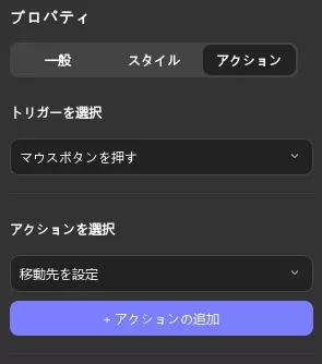 その他、プロパティのアクションには、トリガーとアクションを選択することができます。
