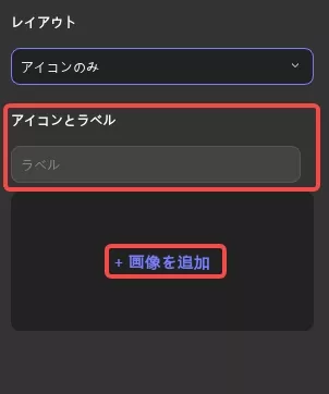 画像フィールドのプロパティには、アイコンとラベルについての設定があります。その下で「+画像を追加」をクリックすると、添付したい画像を追加することができます。