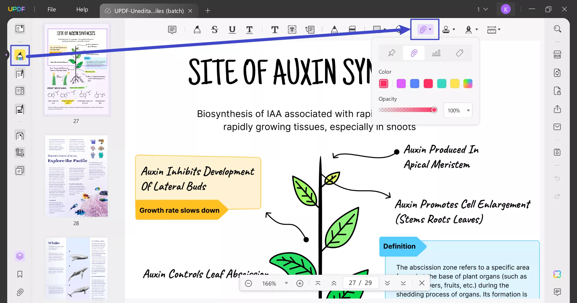 Now, as the extended options open, stay on the "Attachment" icon. Choose the "Color" and “Opacity” as per needs, and then click on the specific area on the PDF where you want to add attachment.