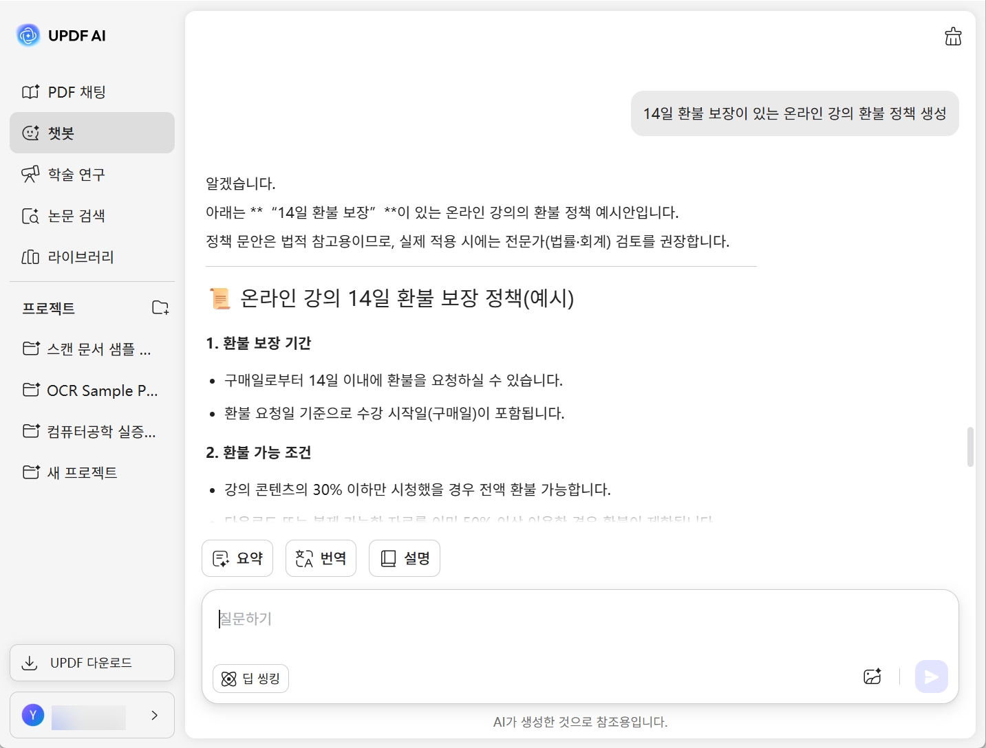 UPDF AI 환불 정책 생성기 사용 FAQ