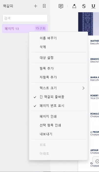 북마크를 추가한 후 마우스 오른쪽 버튼을 클릭하면 드롭다운 목록이 나타납니다. 목록에서 필요에 따라 추가된 북마크의 속성을 편집하고 조정할 수 있습니다.