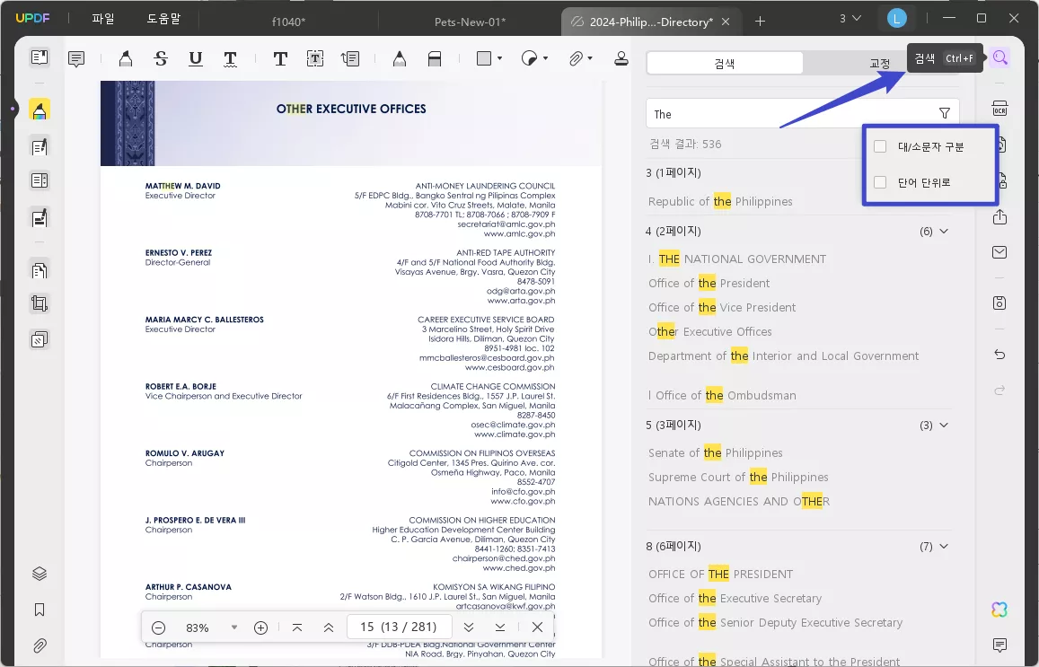 UPDF를 통해 자세히 설명된 문서에서 특정 단어를 검색하려면 돋보기 모양의 "검색" 아이콘을 클릭하세요. "검색" 패널에 찾으려는 단어를 입력하고 검색 결과를 살펴보면 더 빠르게 읽을 수 있습니다.