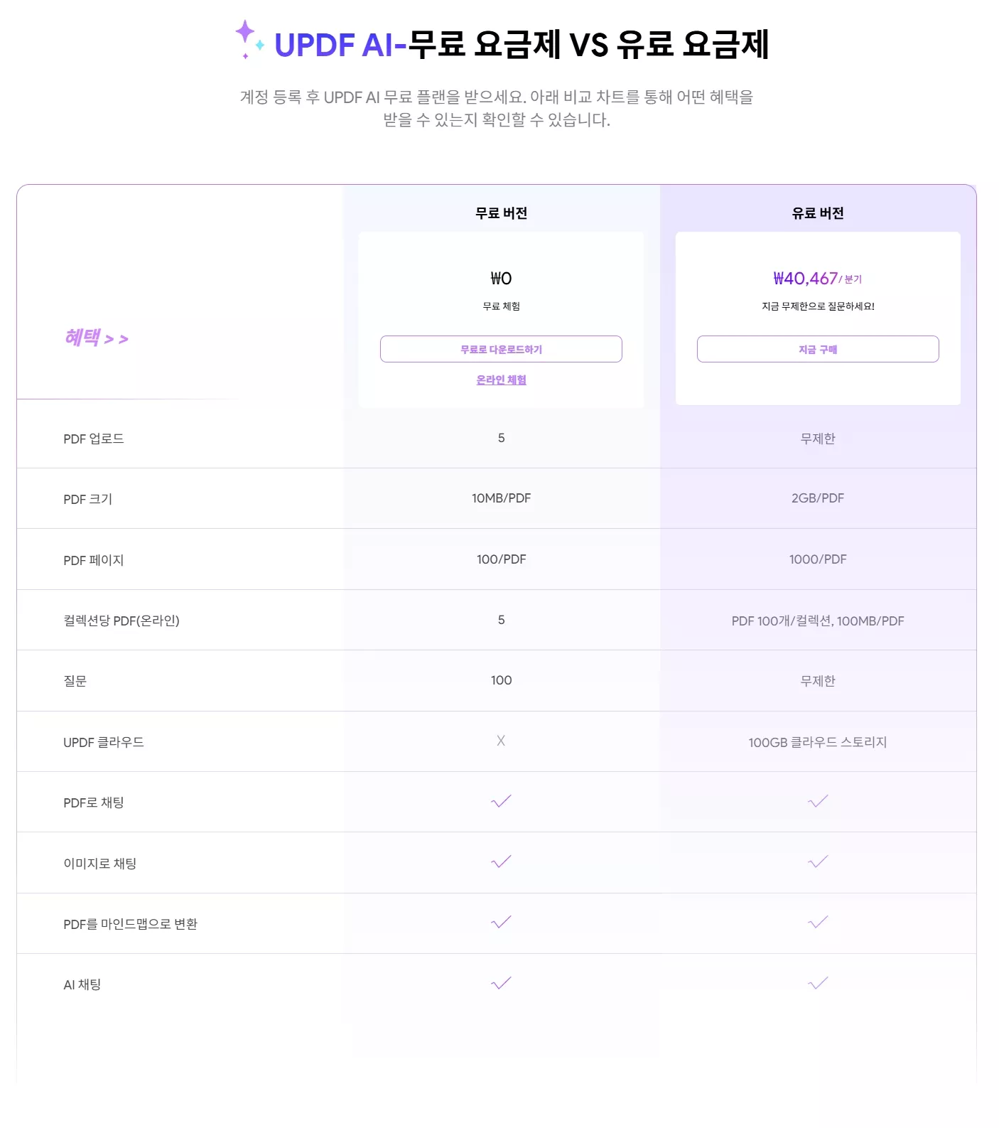 이 무제한 플랜을 사용하면 무제한으로 파일을 업로드하고 분석할 수 있으며, PDF 관련 질문이나 PDF 범위를 넘는 질문을 무제한으로 할 수 있습니다. 게다가 100GB의 안전한 클라우드 스토리지도 제공됩니다. 따라서 ChatGPT Plus를 월 20달러에 구매하는 대신, UPDF의 AI 어시스턴트를 통해 더욱 정교하고 무제한적인 GPT-5 기능을 이용할 수 있습니다.