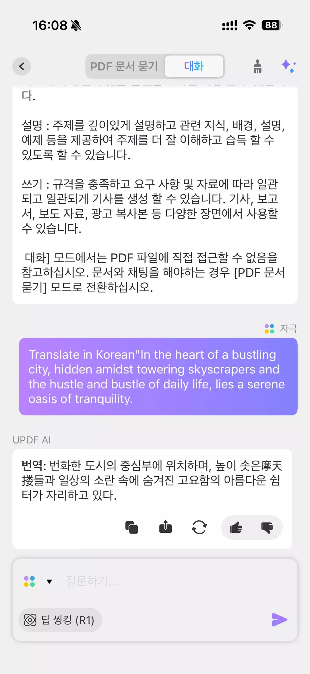 - 이처럼 간단한 단계만으로 UPDF 앱을 나가지 않고도 안드로이드 폰에서 텍스트를 번역할 수 있습니다.