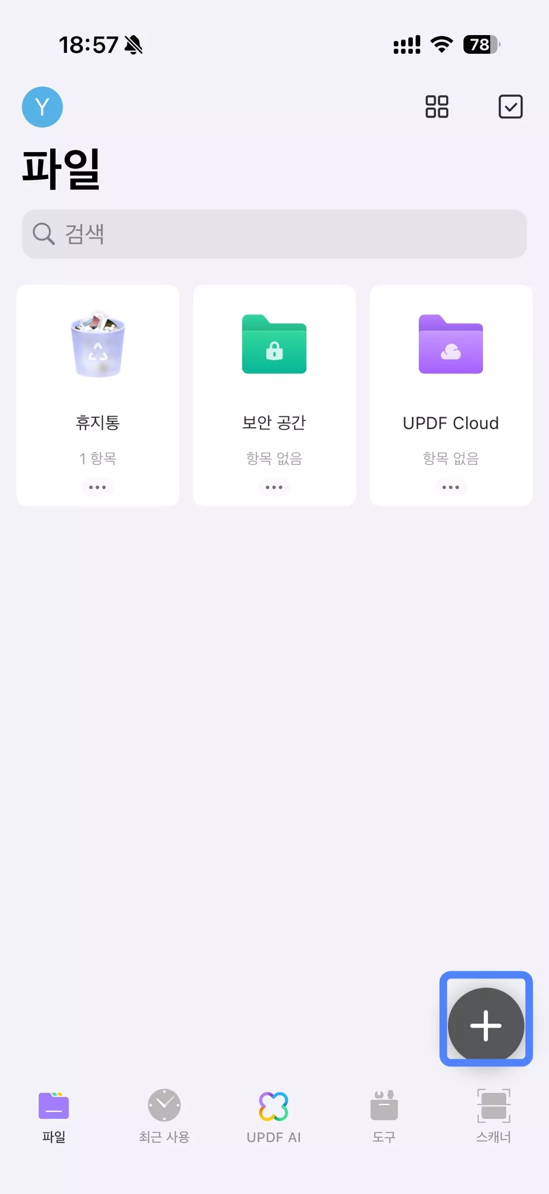 UPDF 앱을 엽니다. 홈 화면에서 "+" 기호를 탭한 후 '파일' 또는 'PDF 만들기'를 클릭합니다. PDF 계획 템플릿을 선택한 후 "열기"를 클릭하여 편집을 시작합니다.